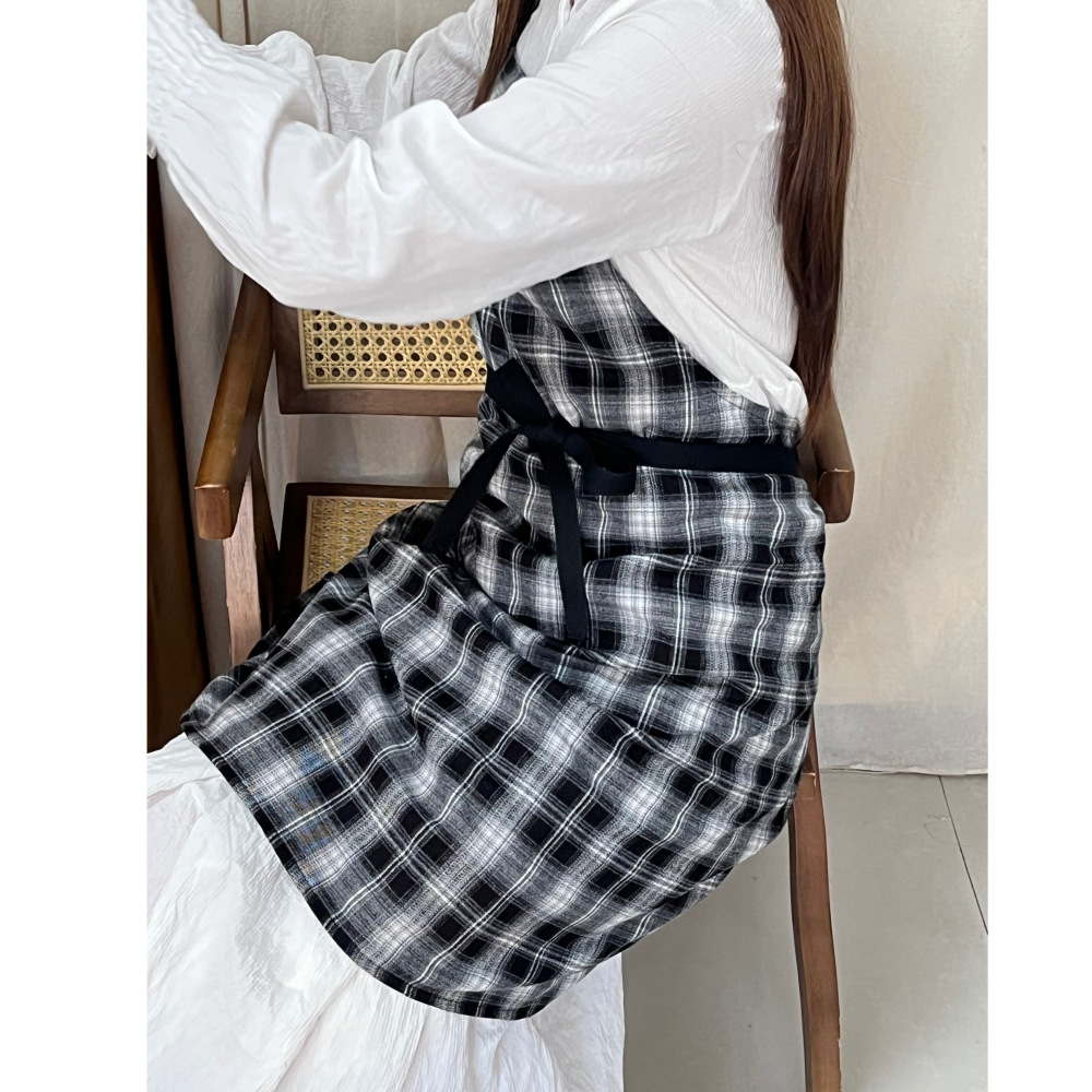 • 레트로 체크무늬 스트레이트 앞치마 (흑백)