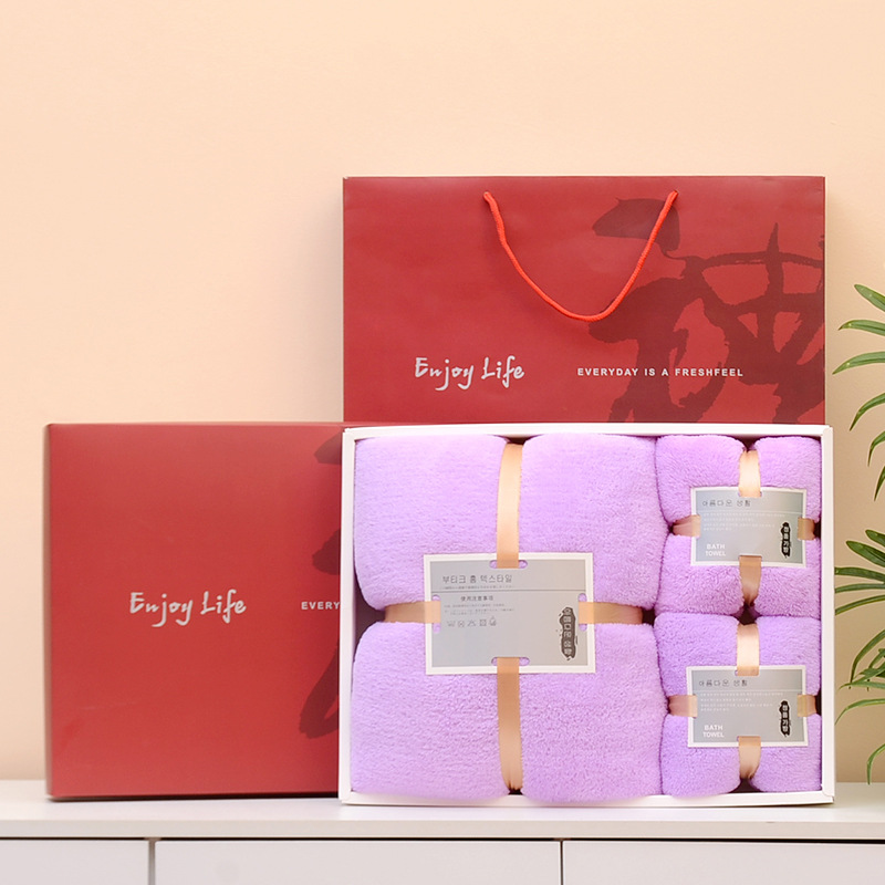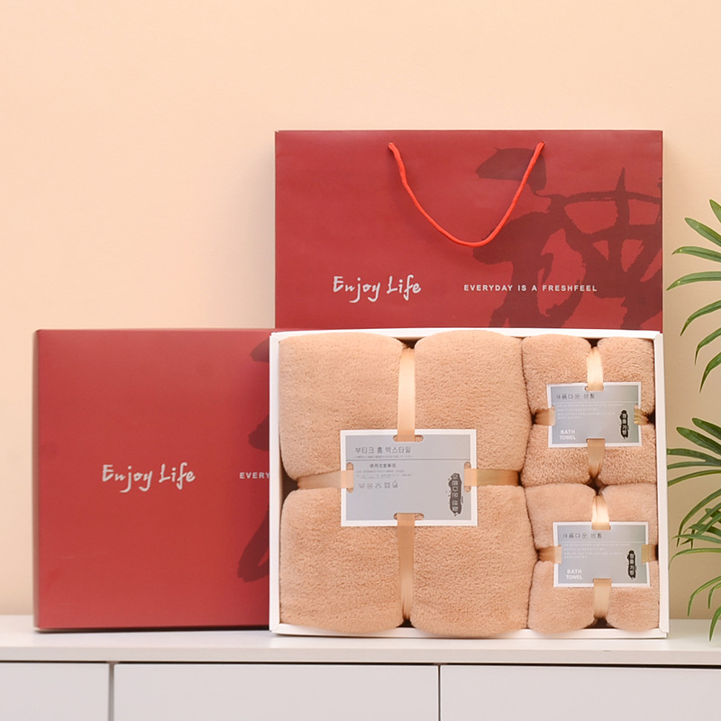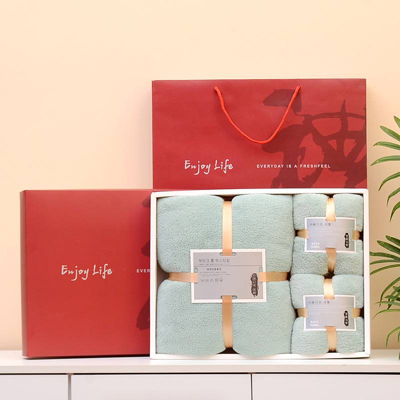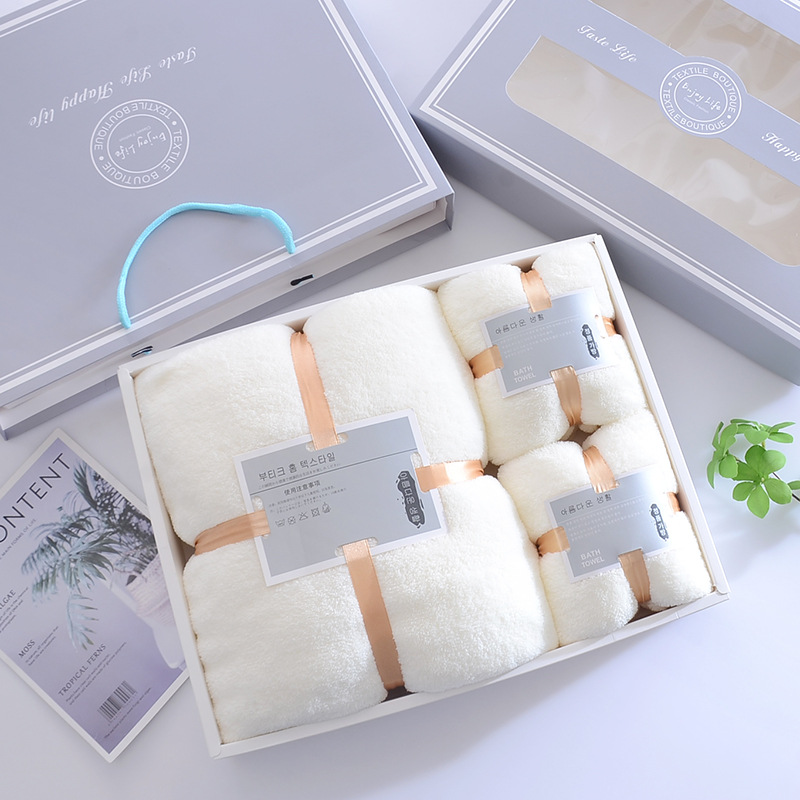 두꺼운 산호 양털 수건 목욕 타월 3 조각 세트 선물 상자 연례 회의 이벤트 선물 로고 자수 수건 세트스토어 가기