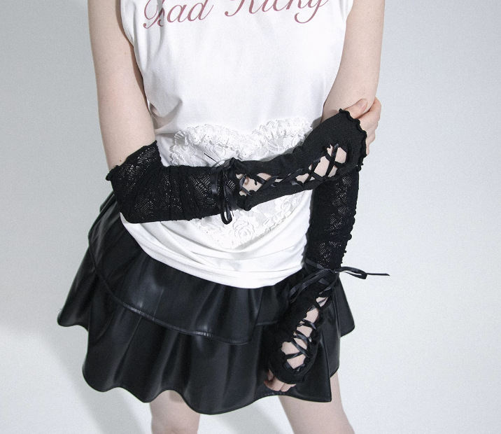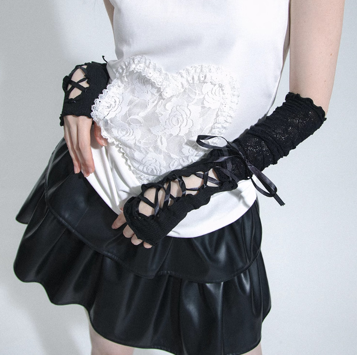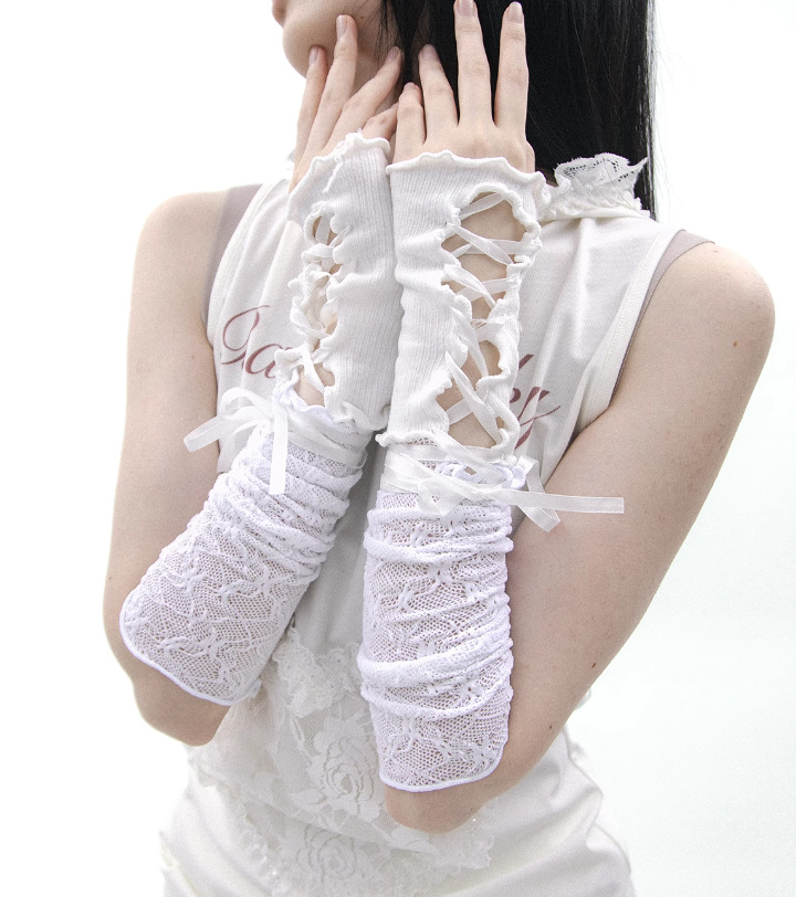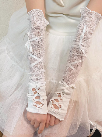 로리타 레이스 업 핸드 슬리브 여성 일본식 스티칭 발레 스타일 리본 스트랩 커프 cos 달콤한 멋진 스타일 장갑스토어 가기