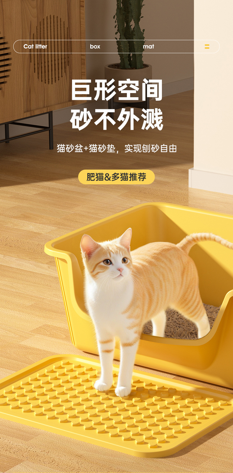 • [망고옐로우] 51cm 고양이 화장실 + 고양이 모래 매트 + 고양이 삽 [신소재 증점]