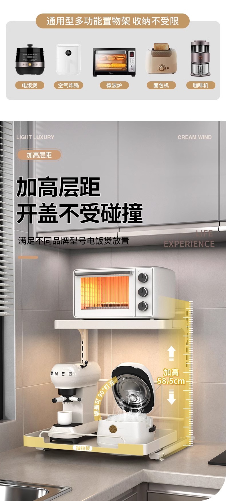 밥솥 스토리지 랙 풀 아웃 카운터 탑 다기능 주방 전자 레인지 전기 기기 냄비 오븐 특수 스토리지 랙