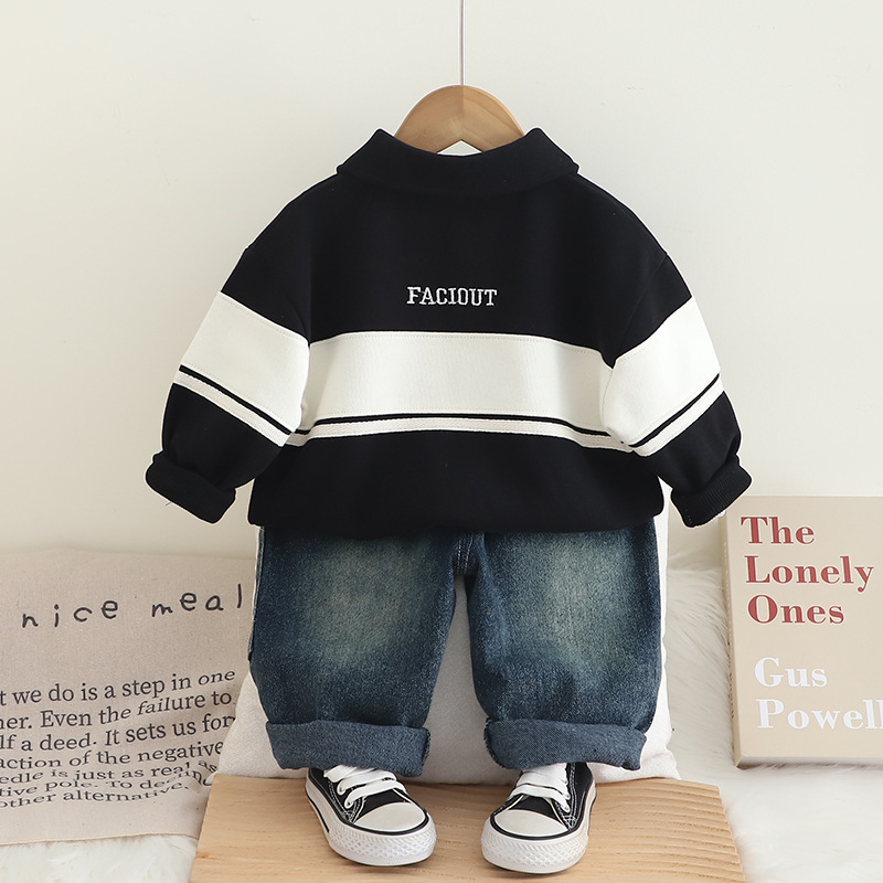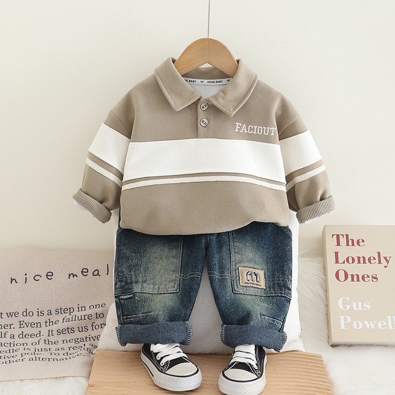 소년 아동복 2025 봄 새로운 와이드 옷깃 POLO 셔츠 어린이 캐주얼 데님 바지 투피스 세트 배치스토어 가기