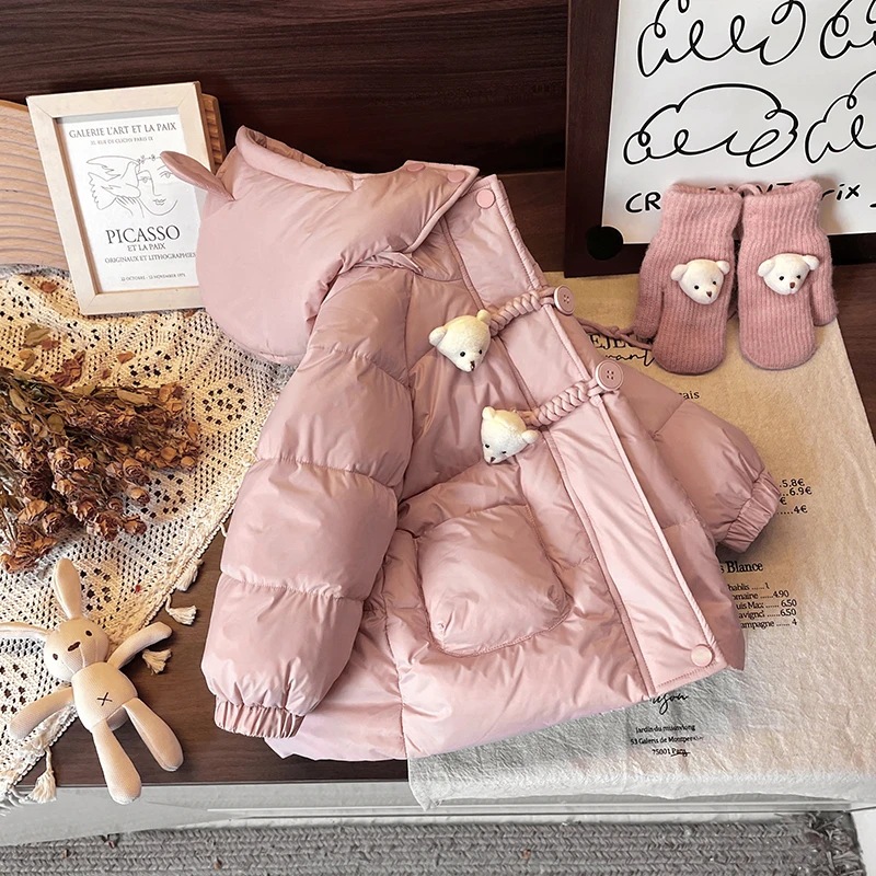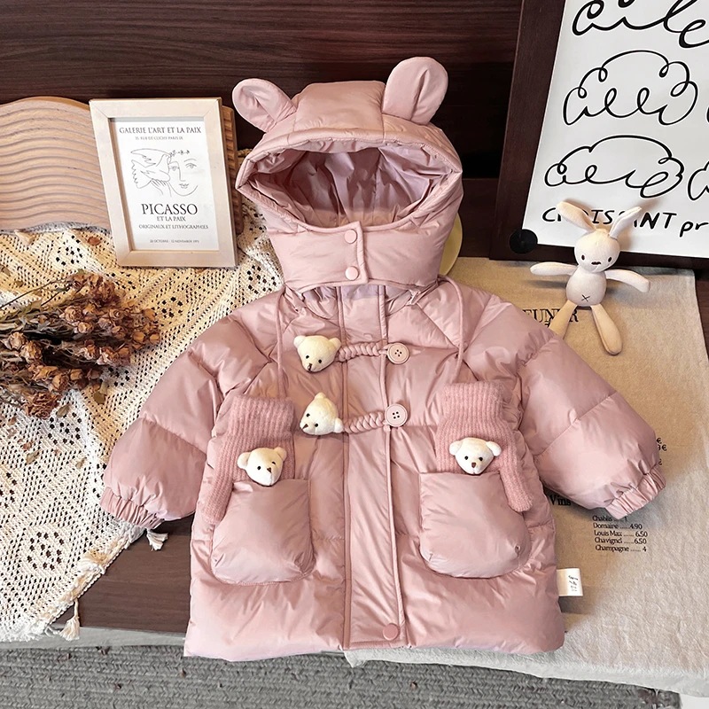 듀폰 3 교정 어린이 다운 재킷 2024 겨울 어린이 다운 재킷 새로운 GB 90 화이트 덕 다운 DW241269