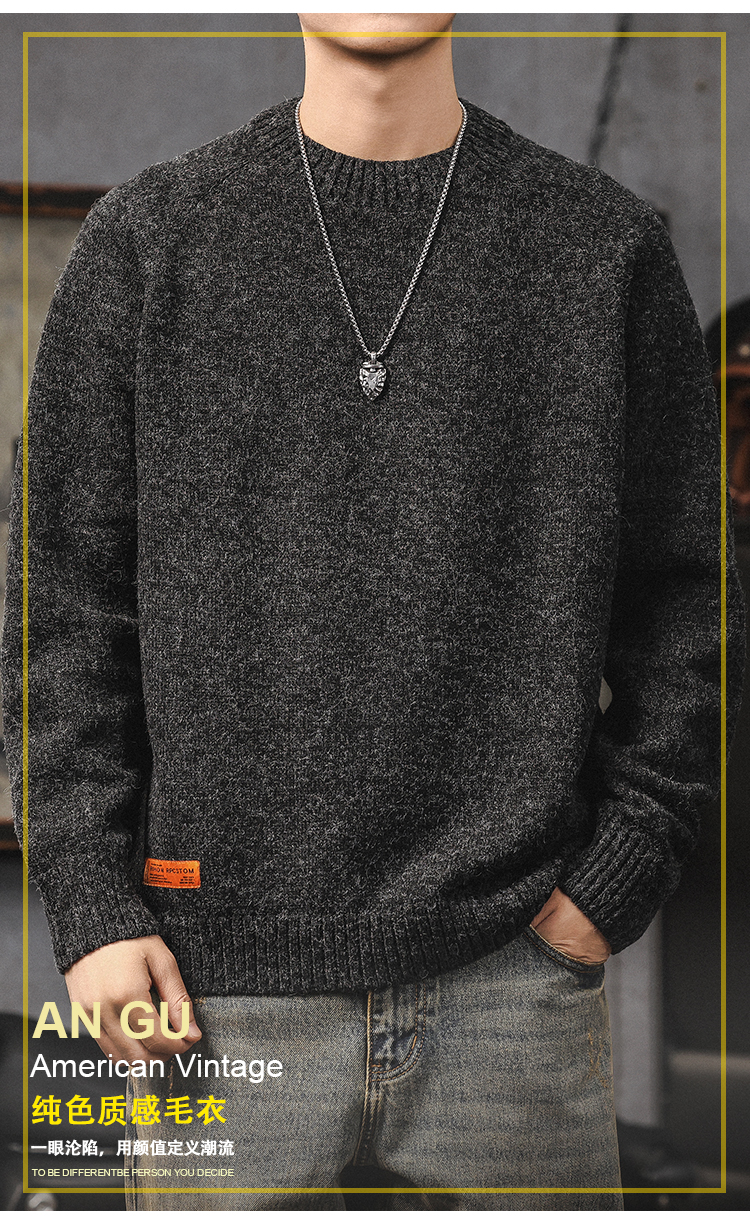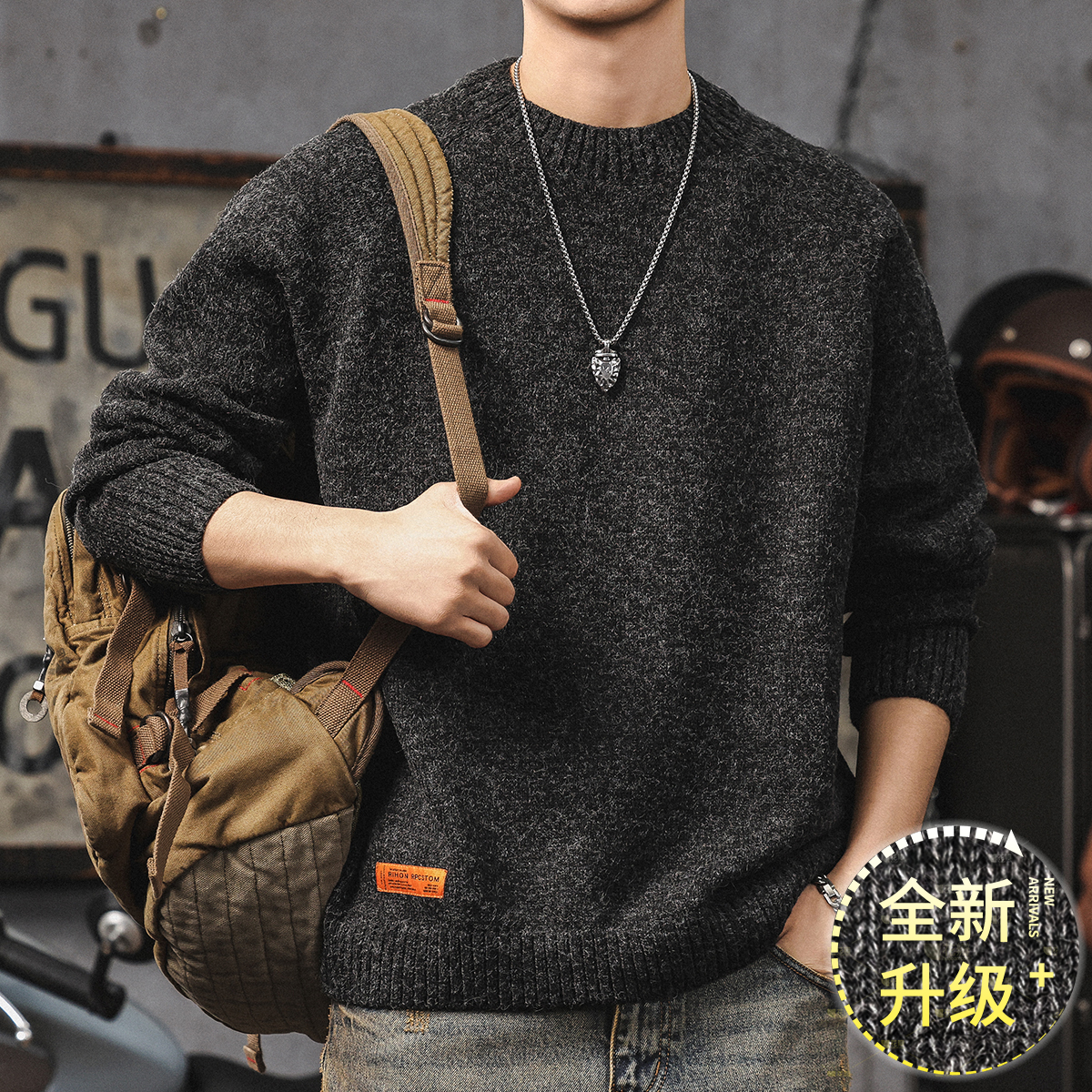 아메리칸 레트로 스웨터 남자의 겨울 느슨한 두꺼운 둥근 목 스웨터 게으른 스타일 캐주얼 남성 자켓스토어 가기