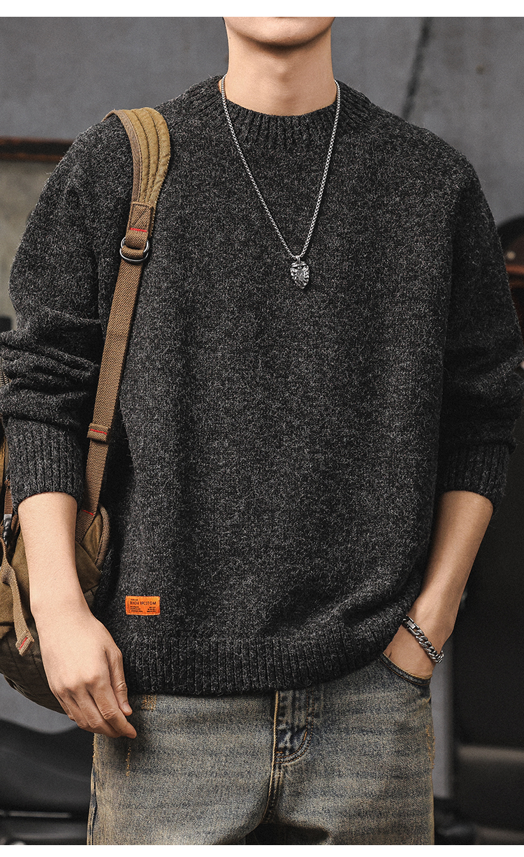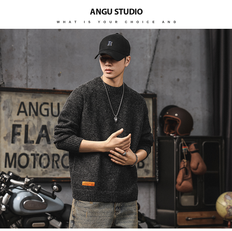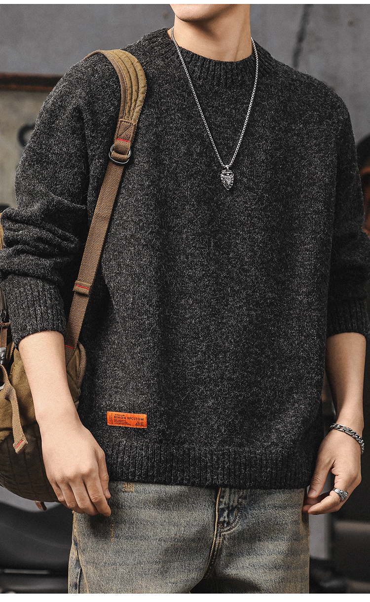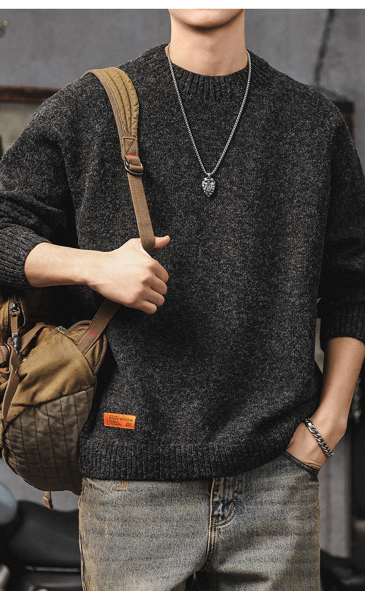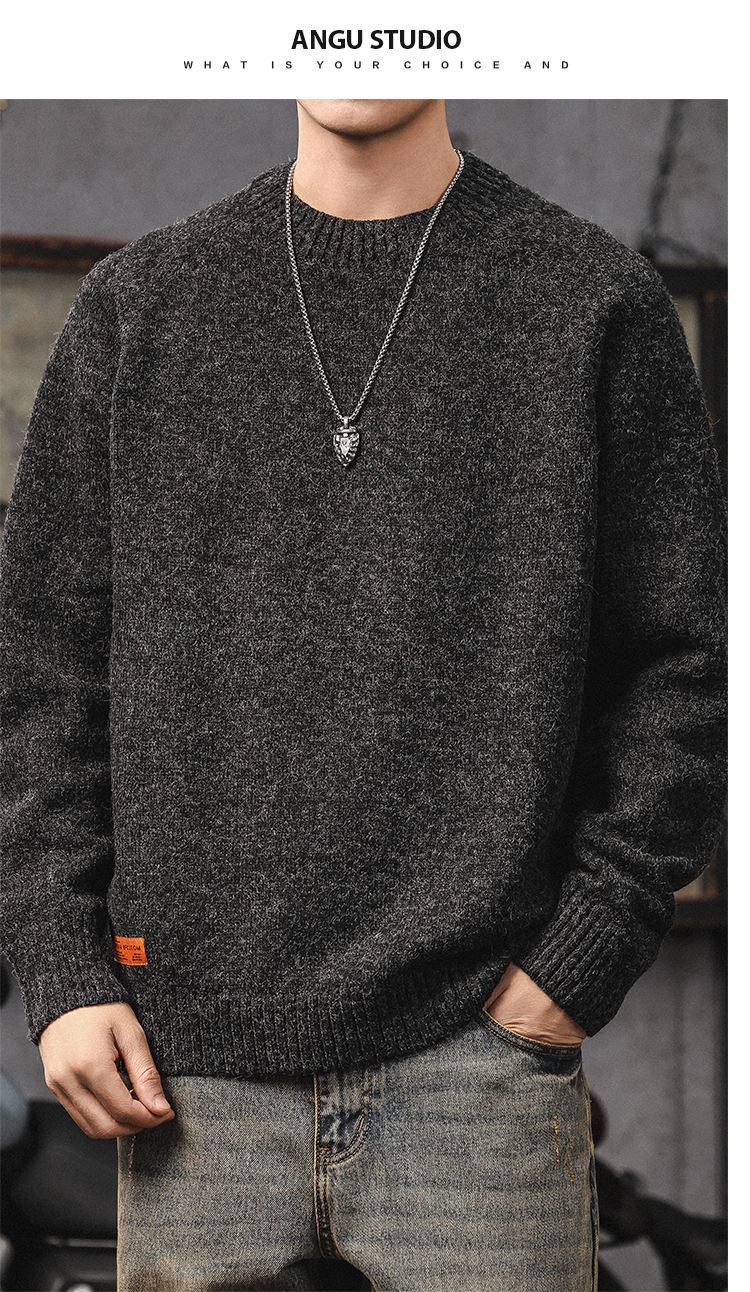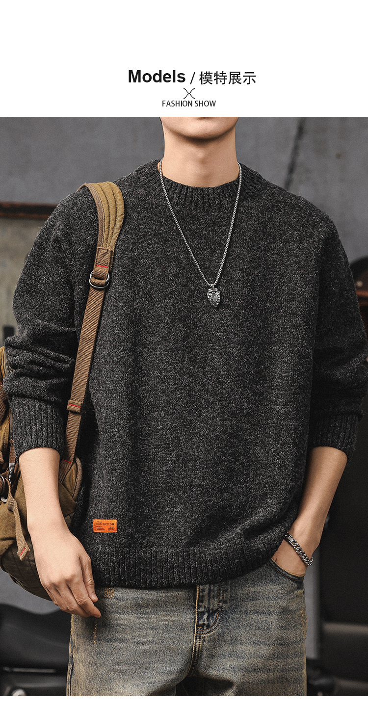 아메리칸 레트로 스웨터 남자의 겨울 느슨한 두꺼운 둥근 목 스웨터 게으른 스타일 캐주얼 남성 자켓