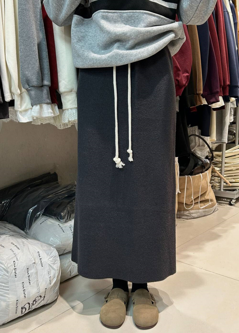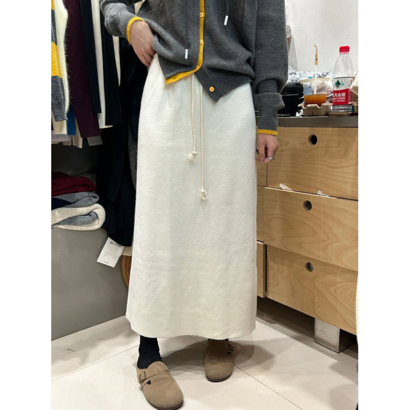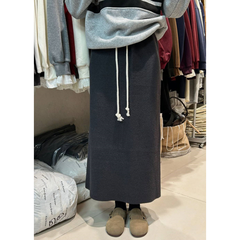 2024 겨울 새로운 한국 스타일 두껍게 간단한 높은 허리 올매치 스트레이트 캐주얼 슬리밍 니트 스커트 여성 트렌디스토어 가기