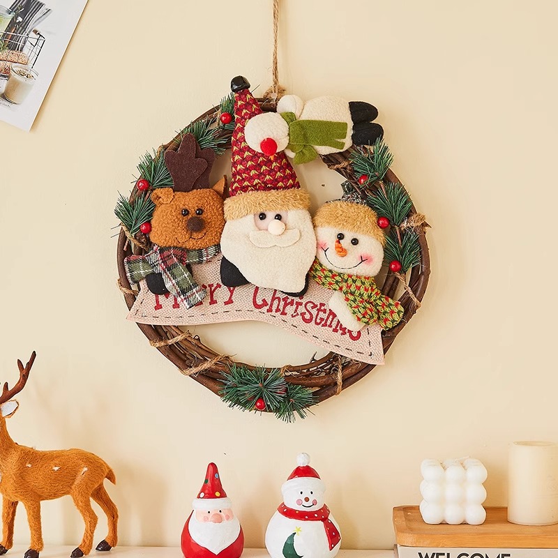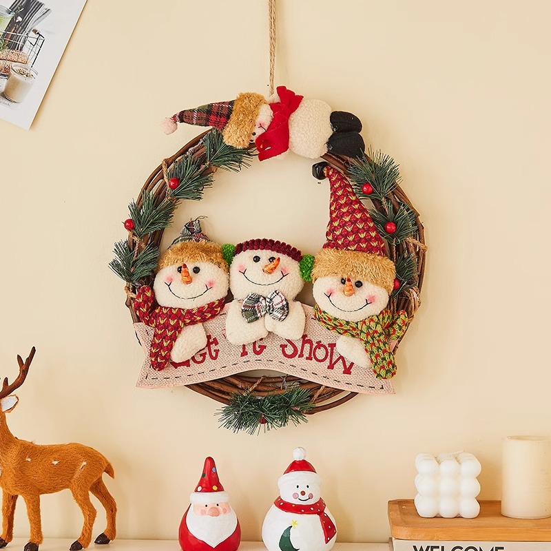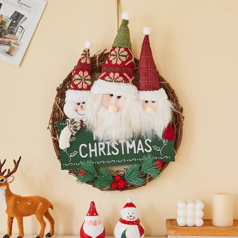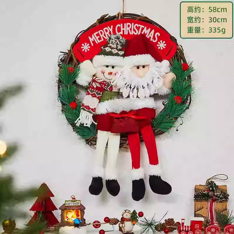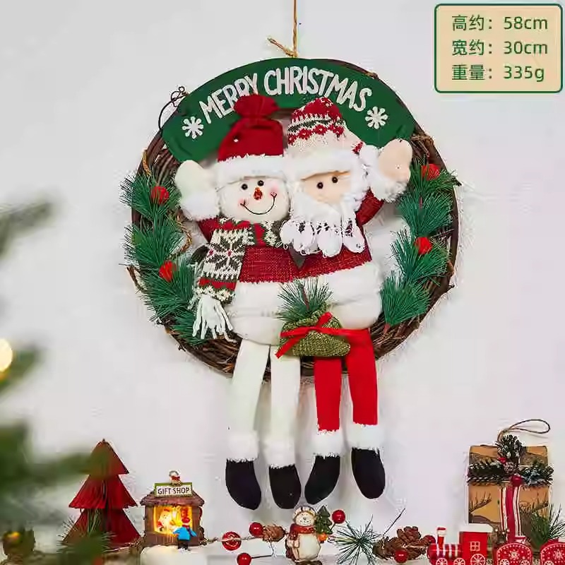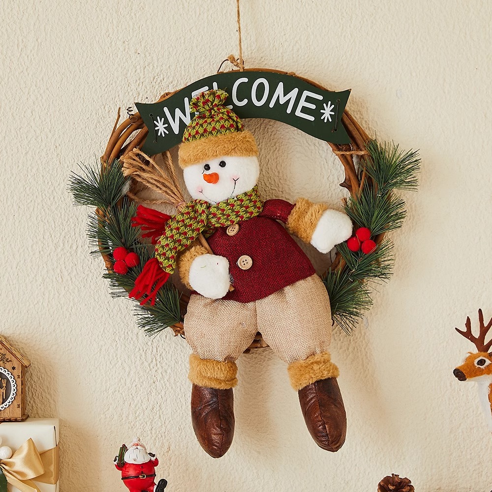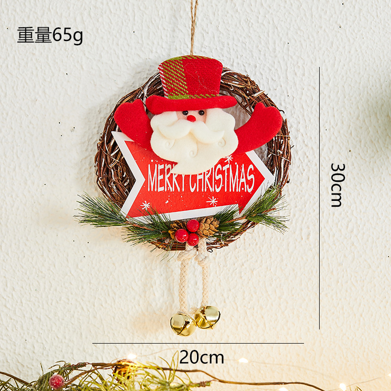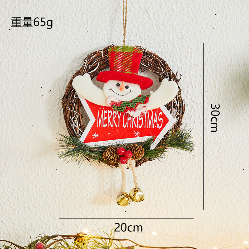 크리스마스 장식 창조적 인 등나무 링 벨 창 유리 문 벽 펜던트 장면 레이아웃 화환 노인 눈사람
