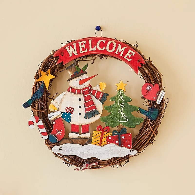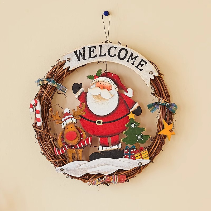 • 노인 눈사람 사슴 문 걸이 등나무 원형 직경 30cm