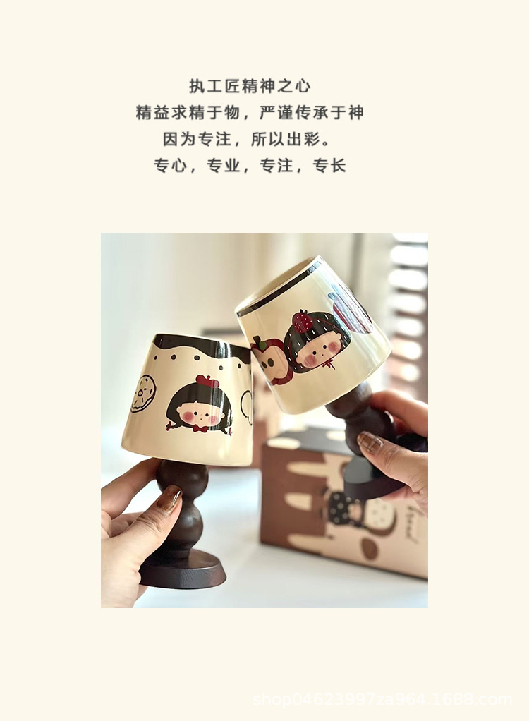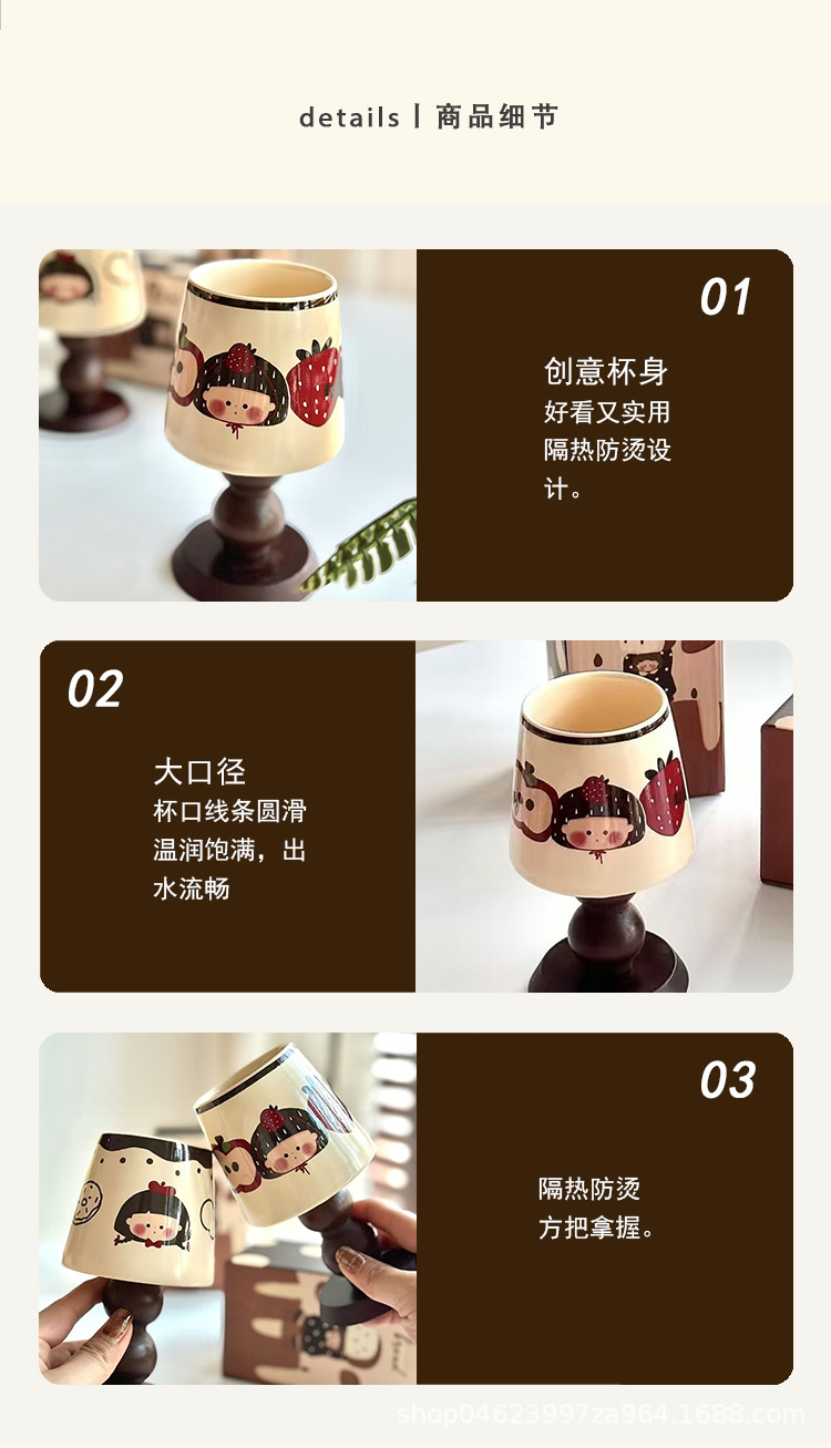 높은 아름다움 가치 복고풍 나무 높은 발 세라믹 컵 여자 귀여운 커피 컵 새로운 디저트 컵 생일 선물스토어 가기