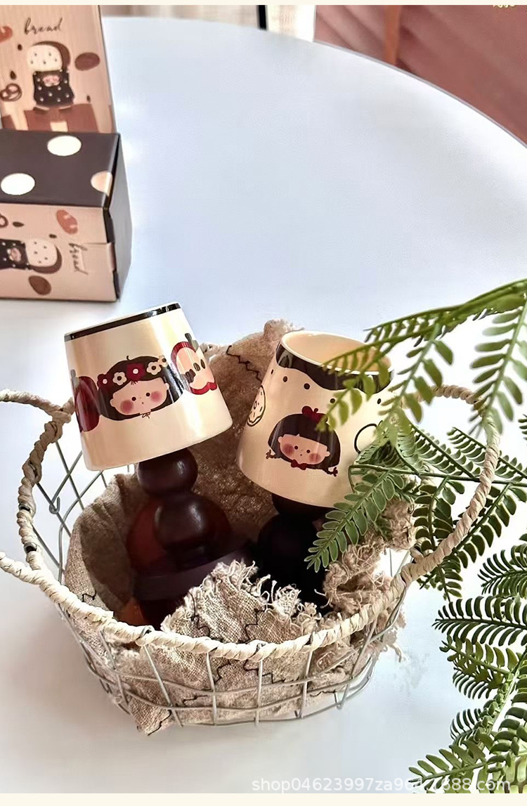 높은 아름다움 가치 복고풍 나무 높은 발 세라믹 컵 여자 귀여운 커피 컵 새로운 디저트 컵 생일 선물