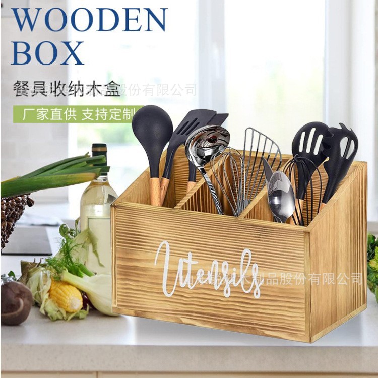 재고 나무 나이프와 포크 젓가락 저장 상자 단단한 나무 주방 식기 마무리 상자 데스크탑 조리기구 보관 상자스토어 가기