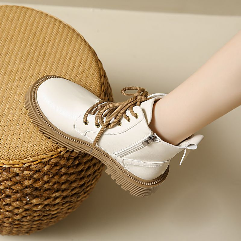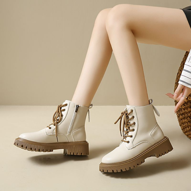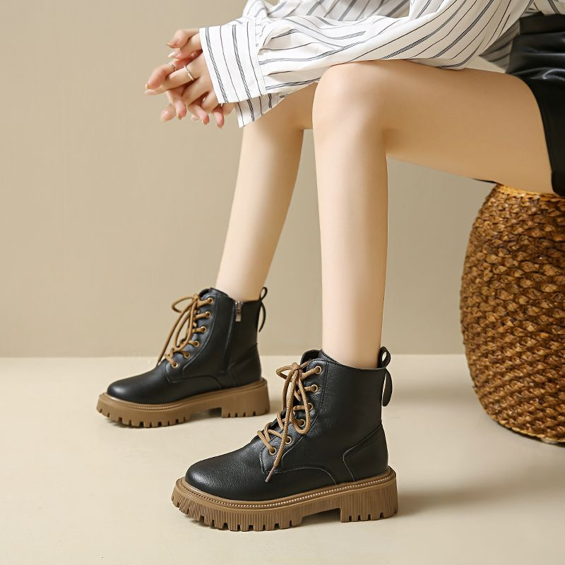 마틴 부츠 여성 영국 스타일 2024 새로운 낮은 부츠 두꺼운 하단 가죽 작은 짧은 부츠 여성 가을 겨울 기모 마틴 부츠스토어 가기