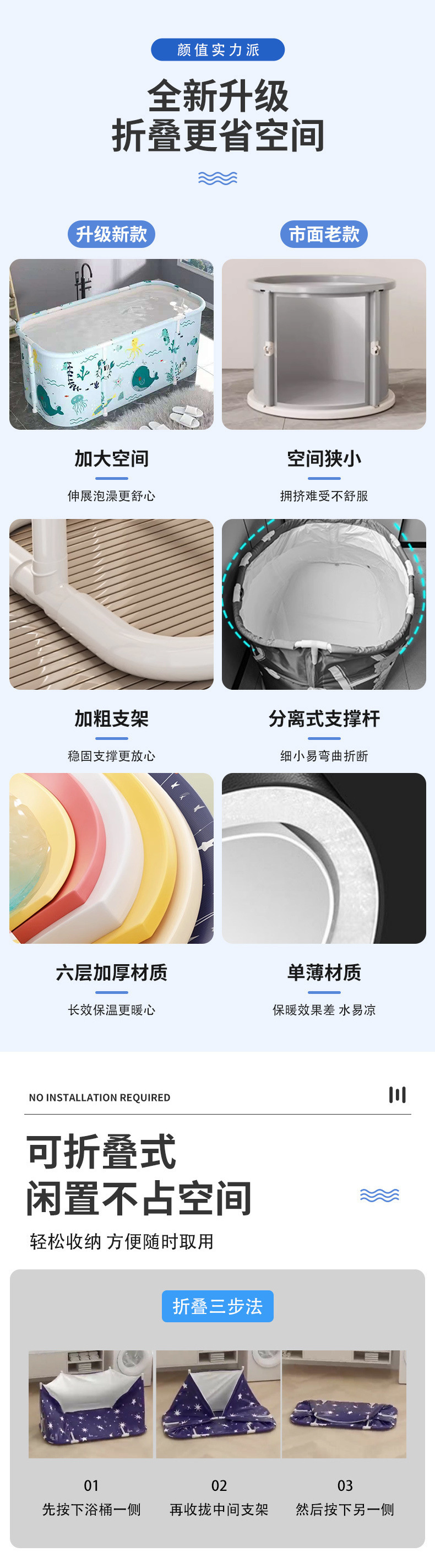 • 6겹의 두꺼운 단열 모델: 욕조 + 시트 쿠션 + 목욕 커버