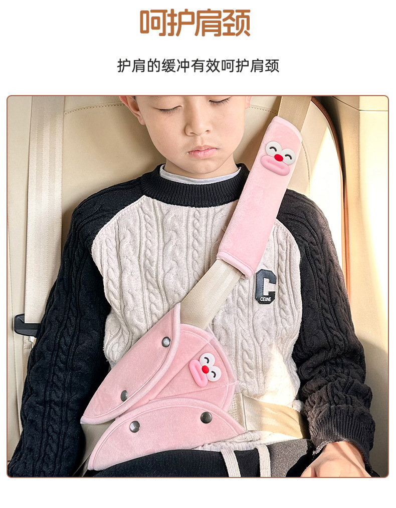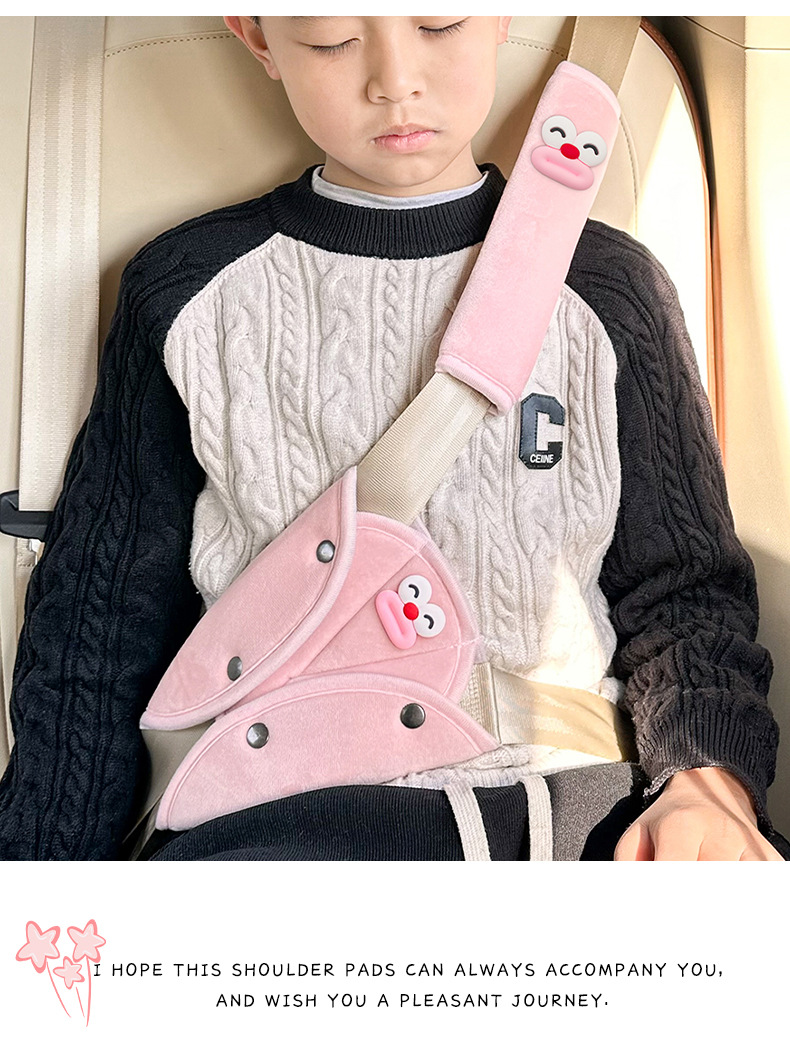 자동차 어린이 안전벨트 어깨패드, 귀여운 플러시 소재의 목 조임 방지 어깨패드, 사계절 사용 가능한 만능 어깨패드 조절 도구