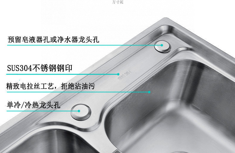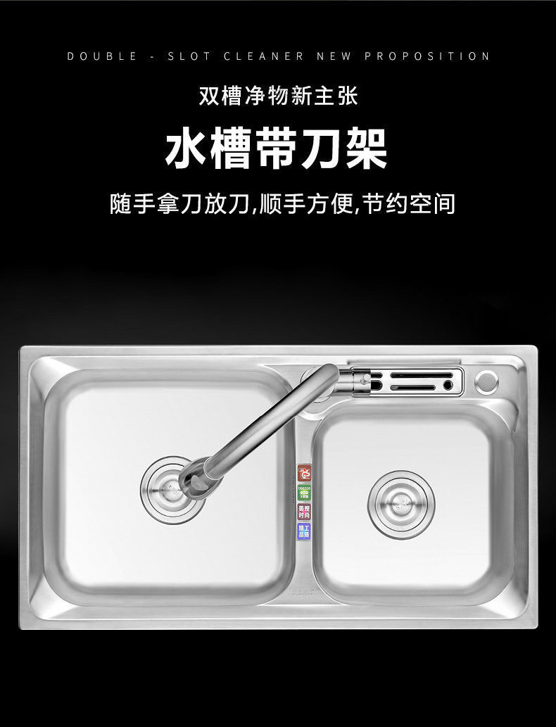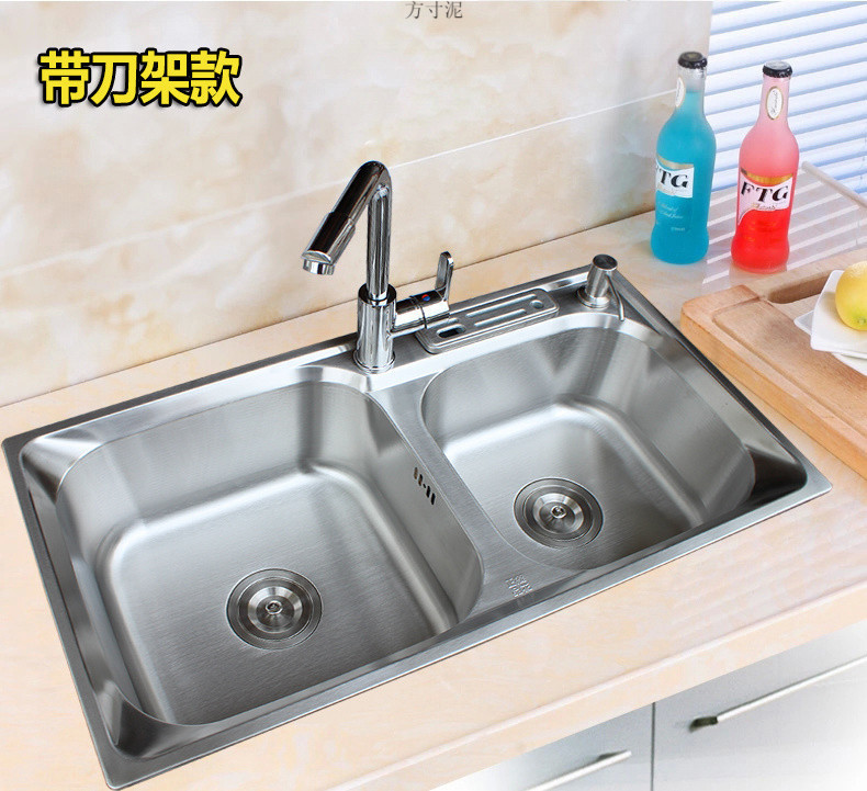 두꺼운 304 스테인레스 스틸 워터 패키지 칼 홀더 와이어 드로잉 더블 가정용 주방 접시 세척 분지 그릇 수영장 1 도매스토어 가기