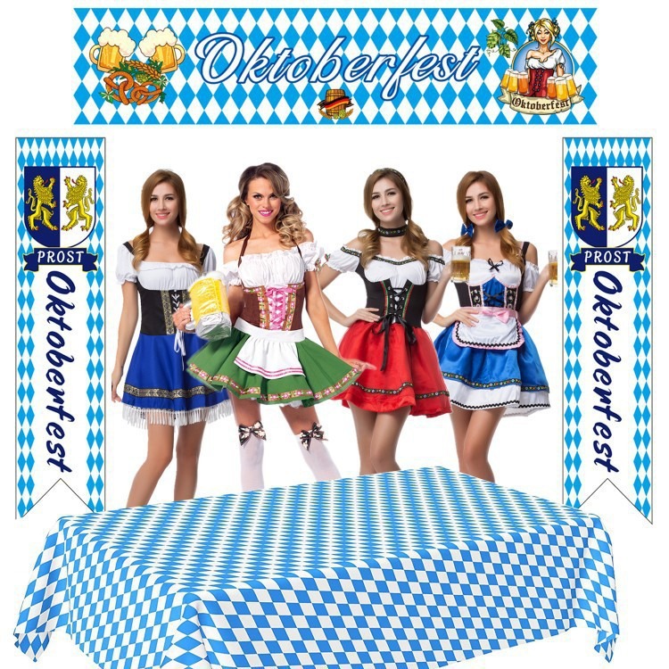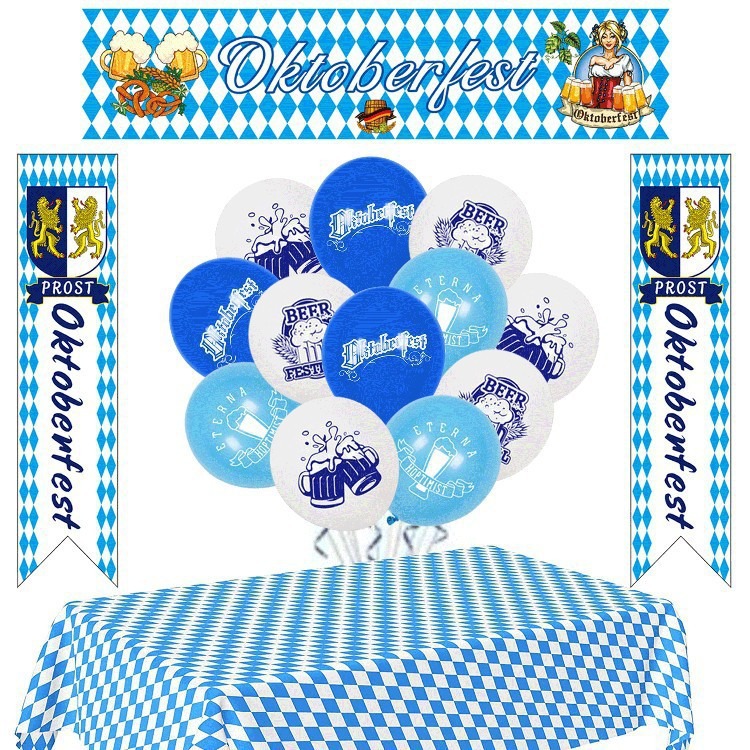 옥토버 페스트 풍선 세트 옥토버 페스트 장면 장식 배열 문 풍선 파란색과 흰색 인쇄 크로스 테두리스토어 가기