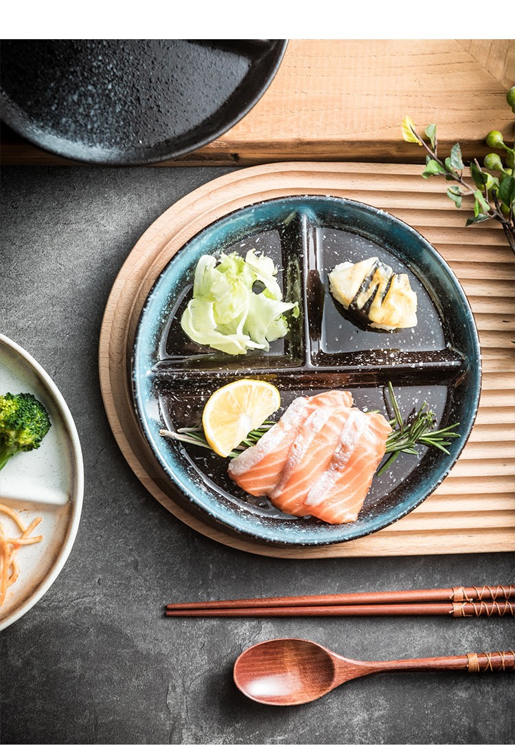 일본식 3 칸 분할 판 세라믹 분할 구획 지방 감소 판 감금 클럽 뷰티 살롱 양적 플레이트 플레이트