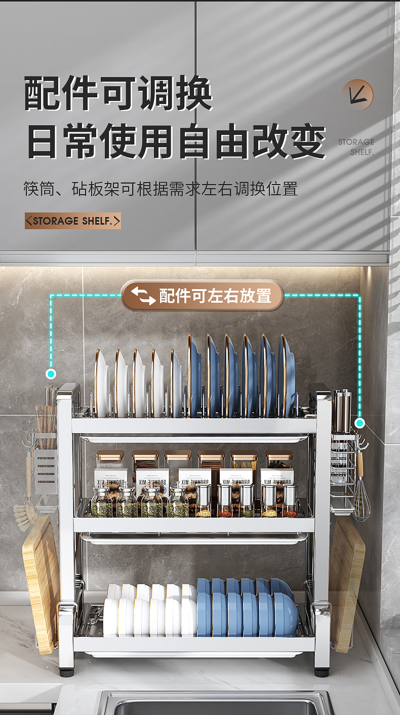 다기능 주방 선반, 식기 배수구, 가정용 식기 선반, 접시 선반, 칼, 도마, 젓가락 보관함, 맞춤형스토어 가기