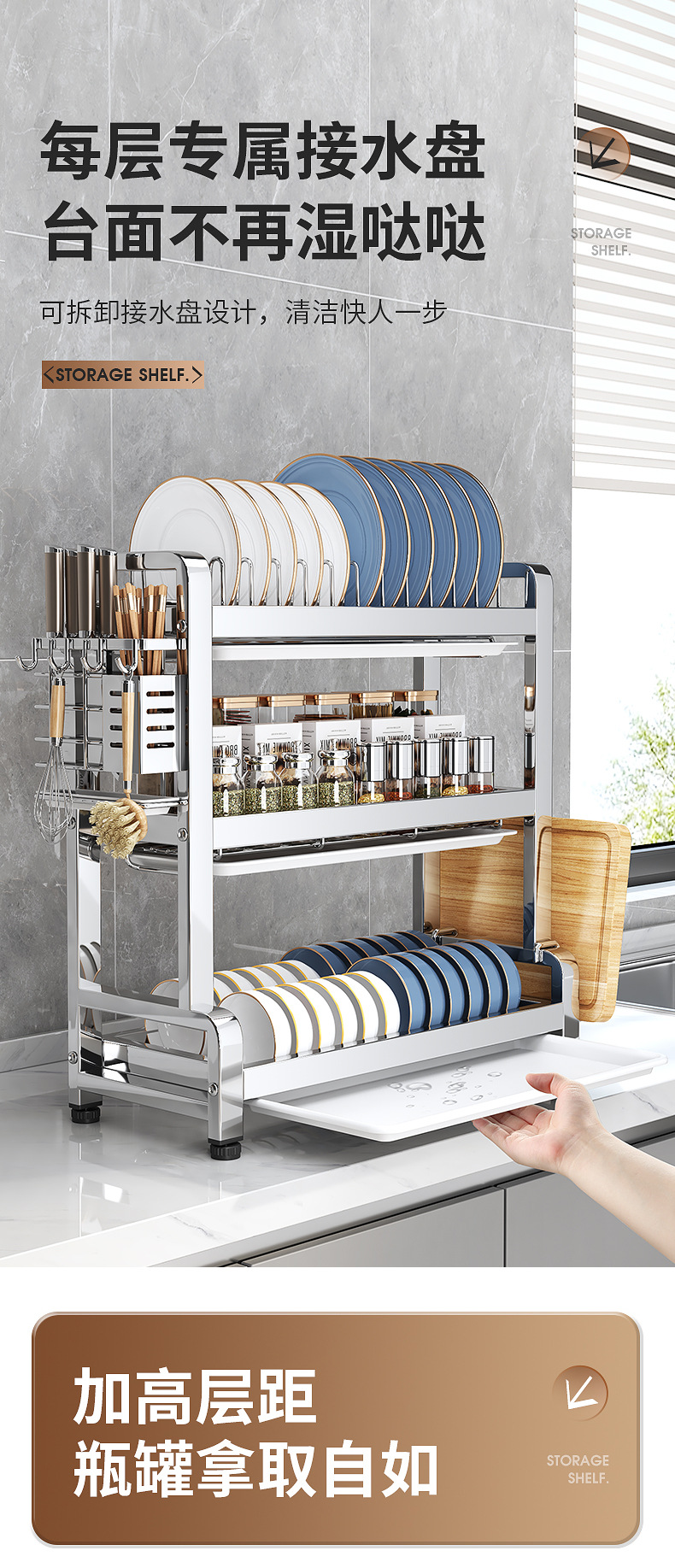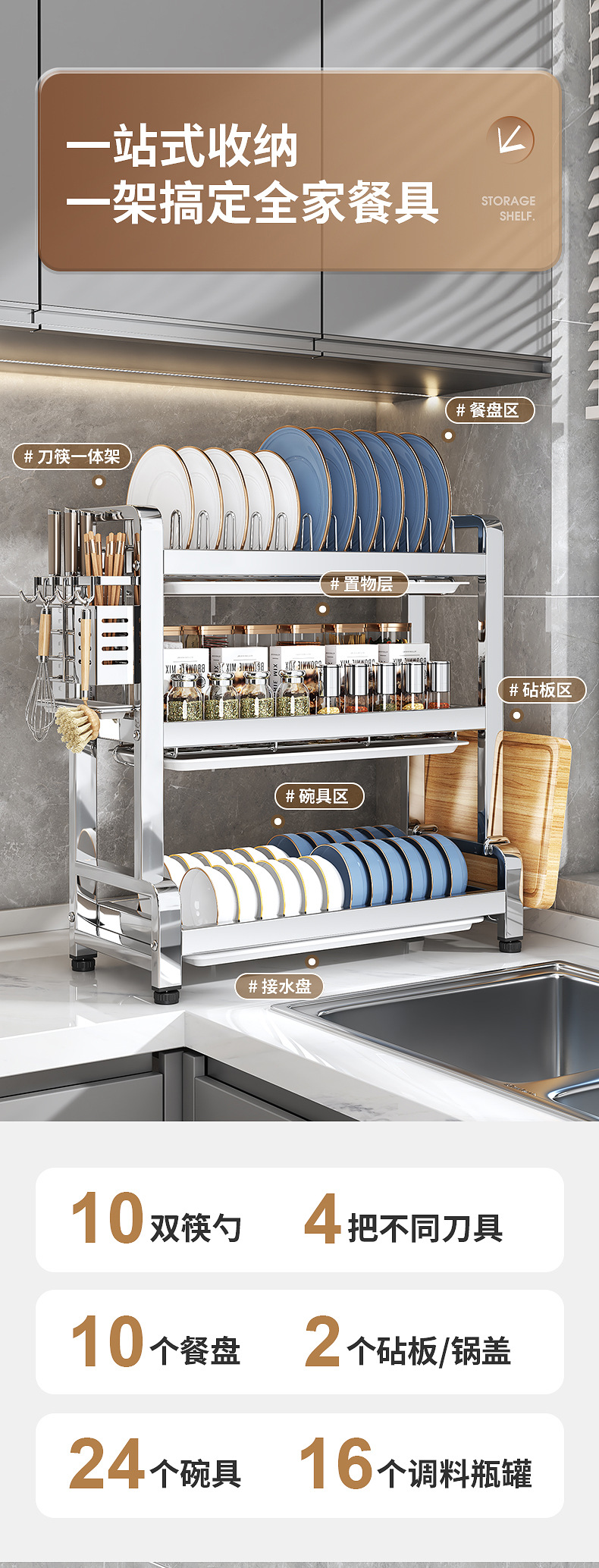 다기능 주방 선반, 식기 배수구, 가정용 식기 선반, 접시 선반, 칼, 도마, 젓가락 보관함, 맞춤형