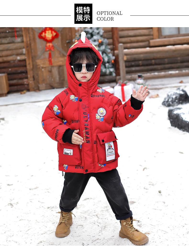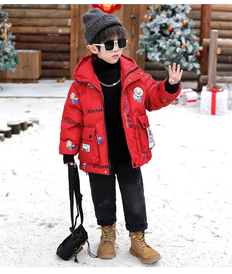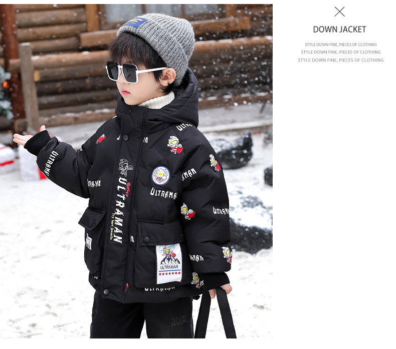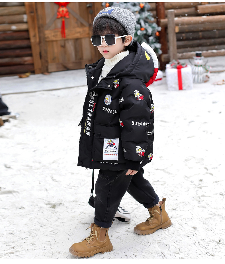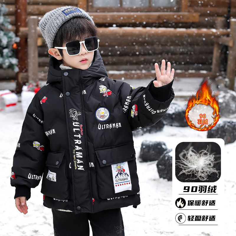 울트라 맨 소년 다운 재킷 겨울 2024 새로운 잘 생긴 어린이와 소년 두꺼운 겨울 옷 아기 따뜻한 재킷스토어 가기