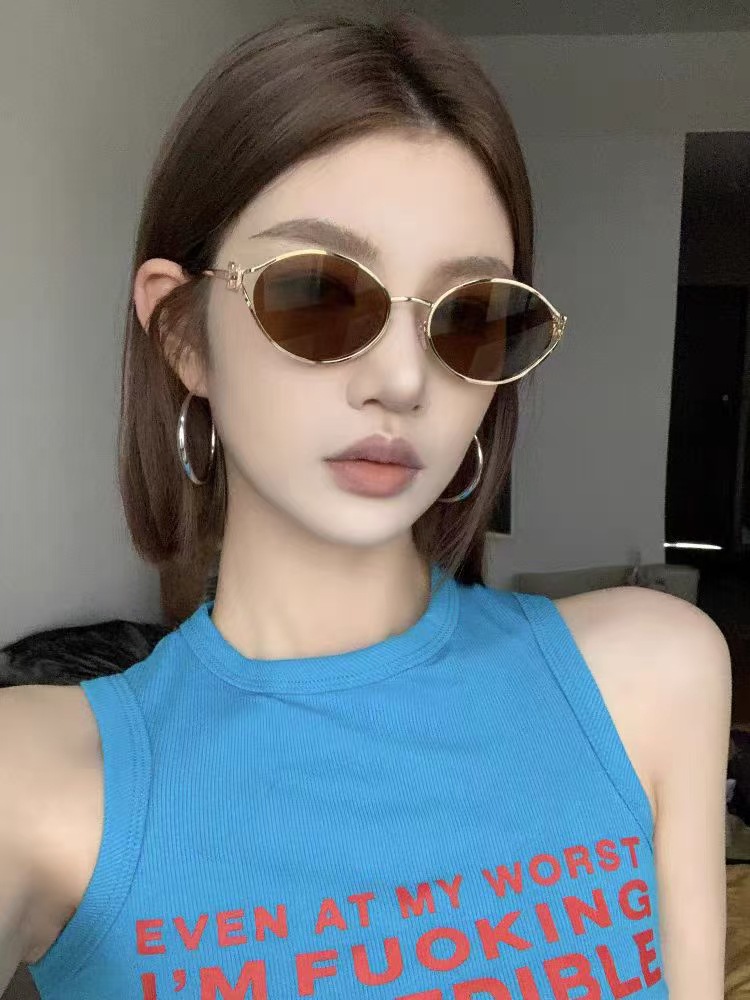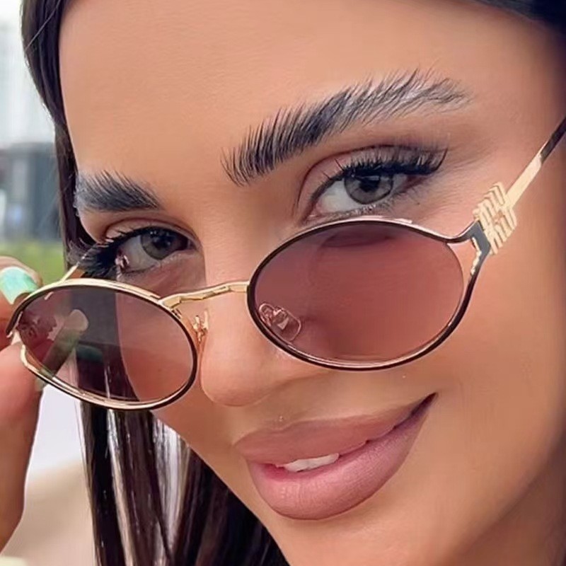 타원형 중공 선글라스 2024 새로운 유럽과 미국의 선글라스 국경 패션 핫 걸 레트로 선글라스 오목 모양스토어 가기