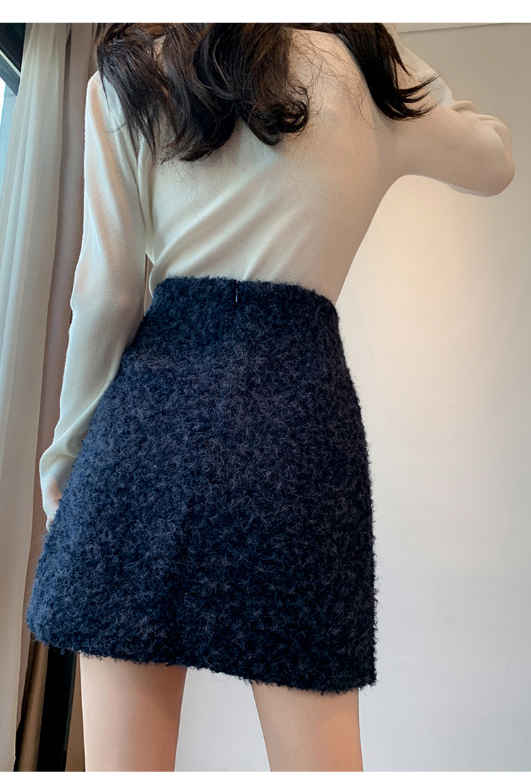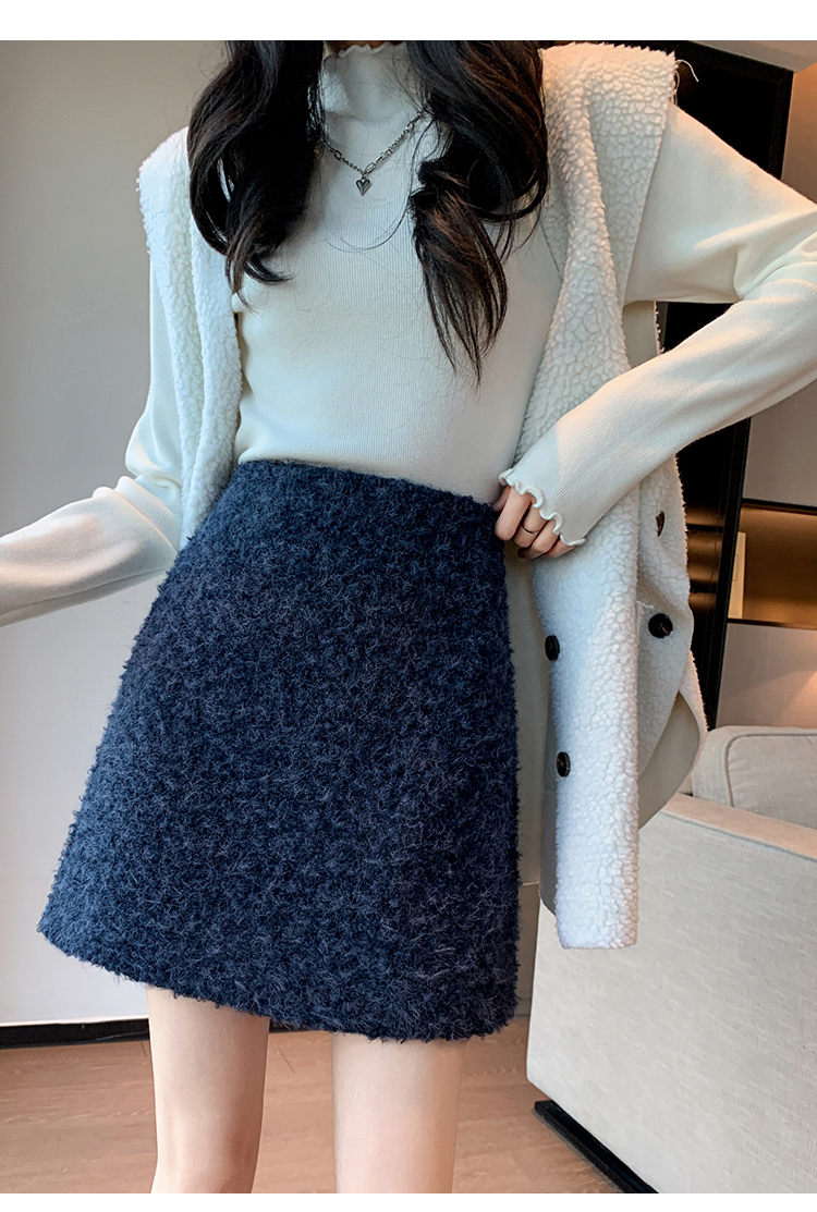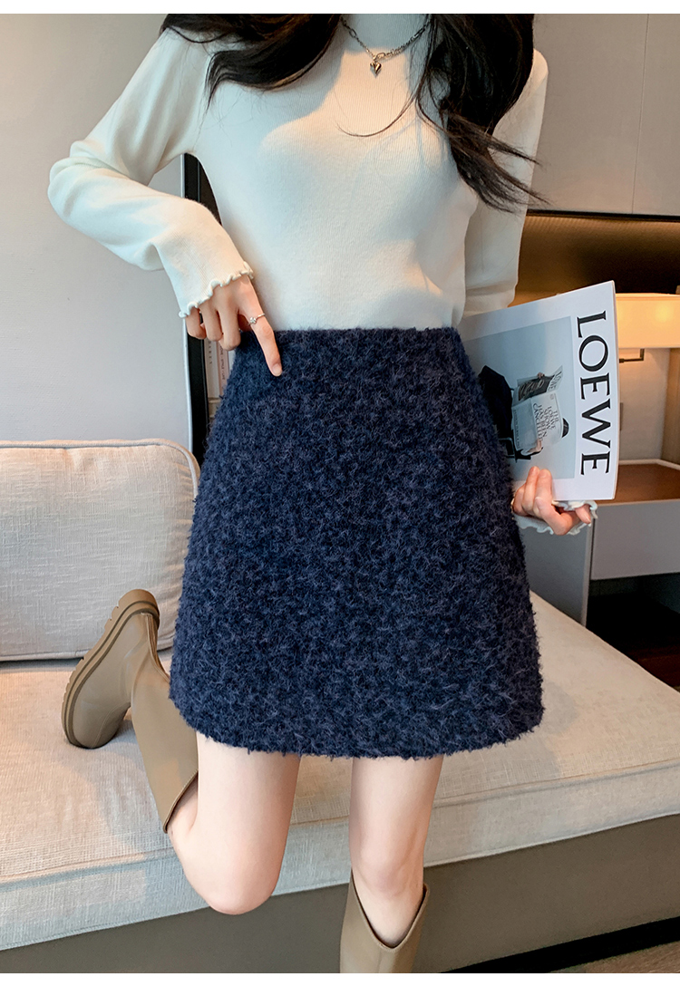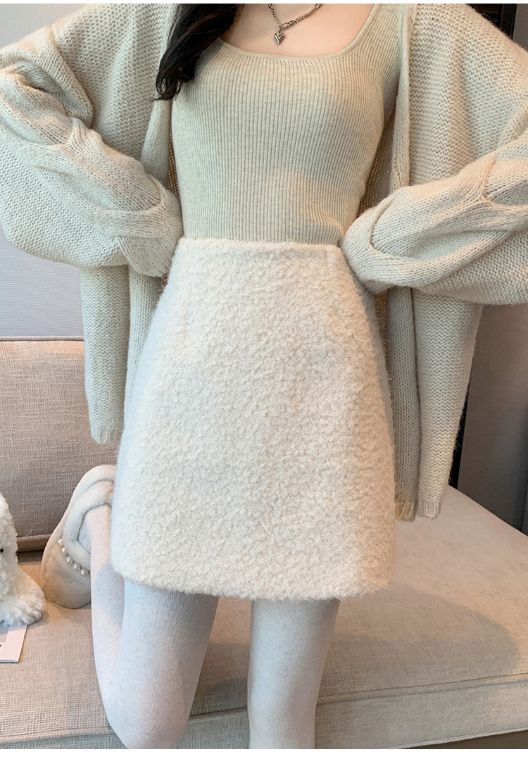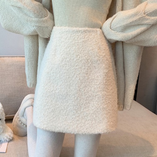 두꺼운 캐시미어 모직 스커트 여성의 가을과 겨울 높은 허리 슬리밍 A-라인 스커트 작은 엉덩이 흰색 짧은 치마