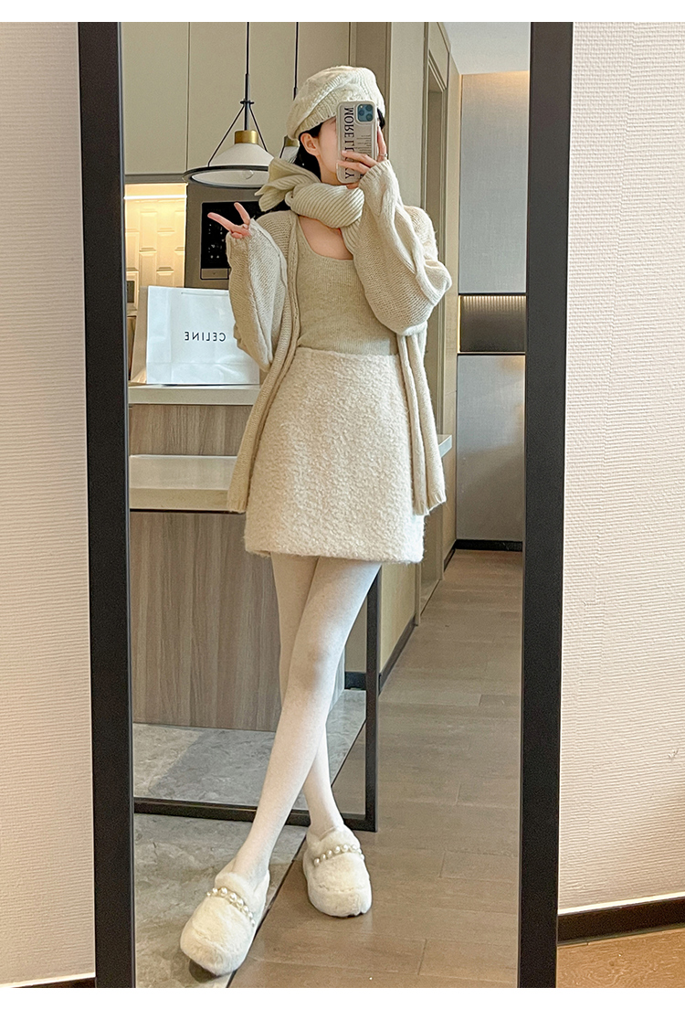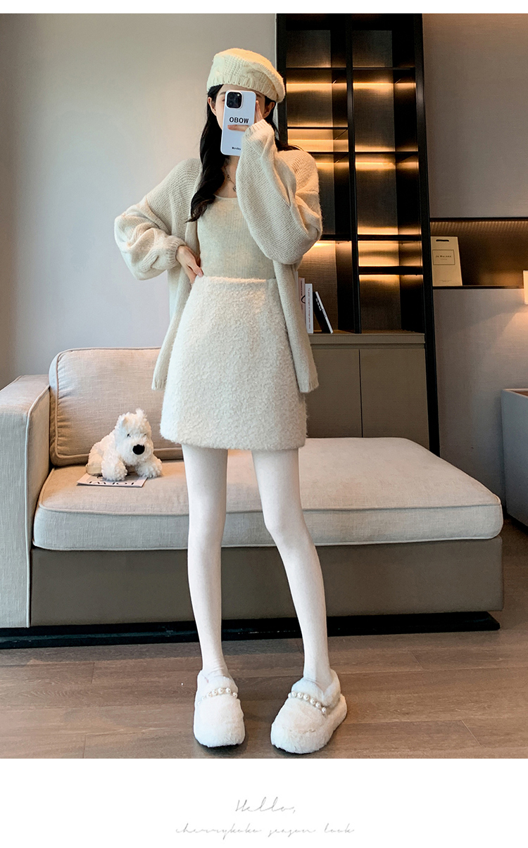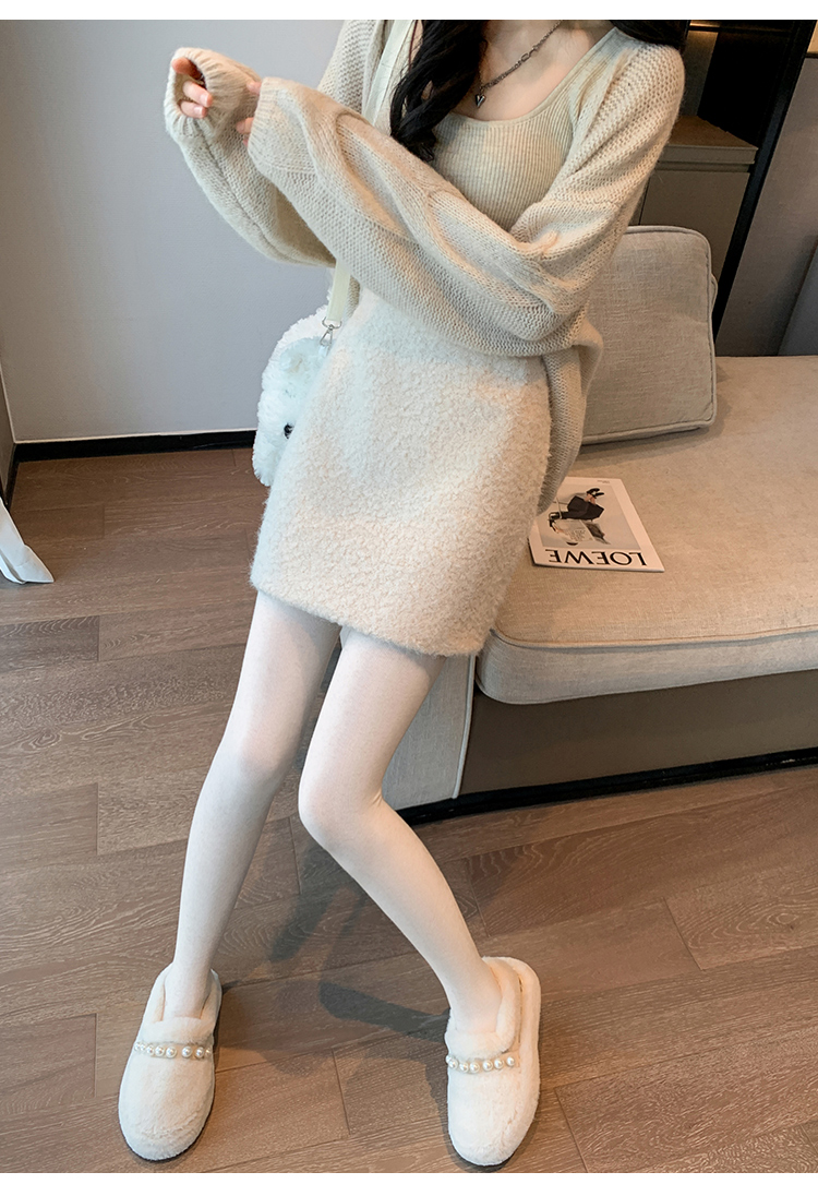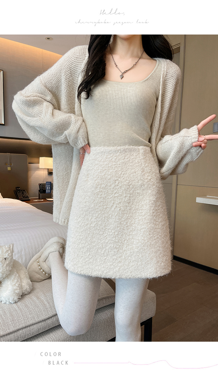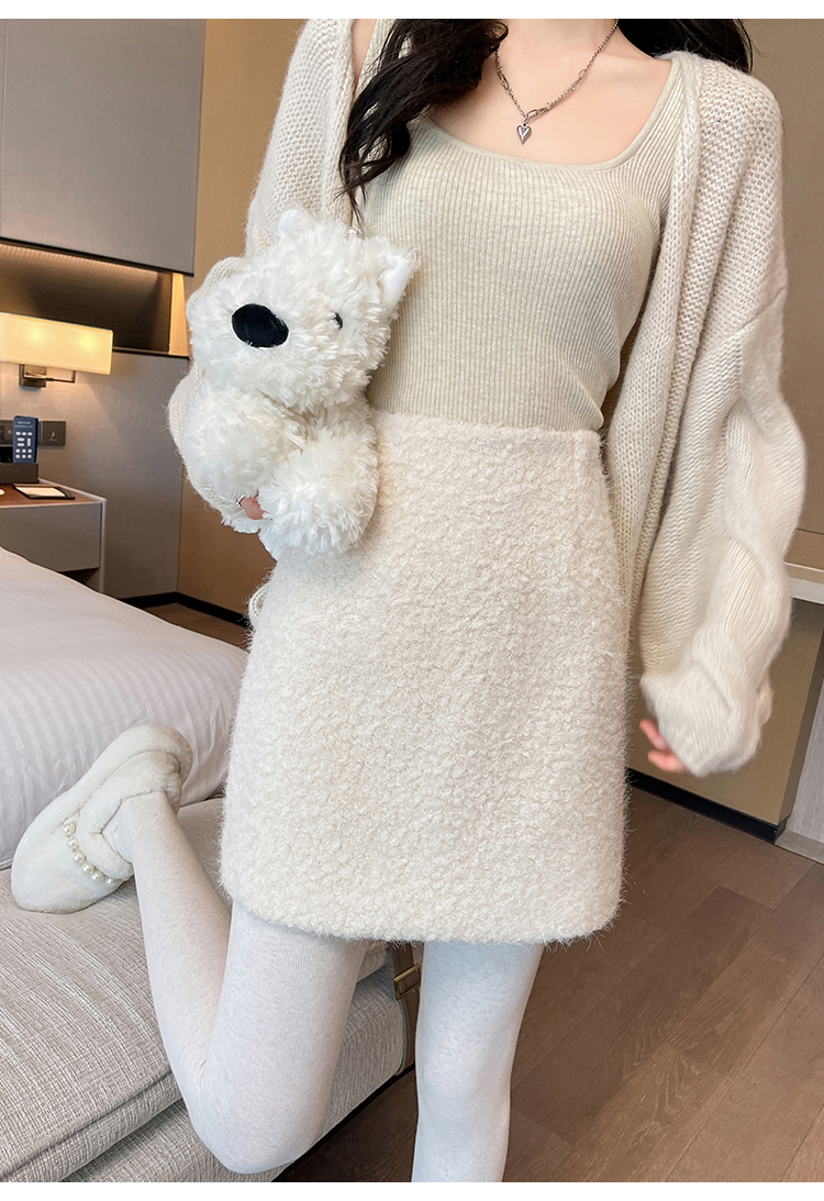 두꺼운 캐시미어 모직 스커트 여성의 가을과 겨울 높은 허리 슬리밍 A-라인 스커트 작은 엉덩이 흰색 짧은 치마