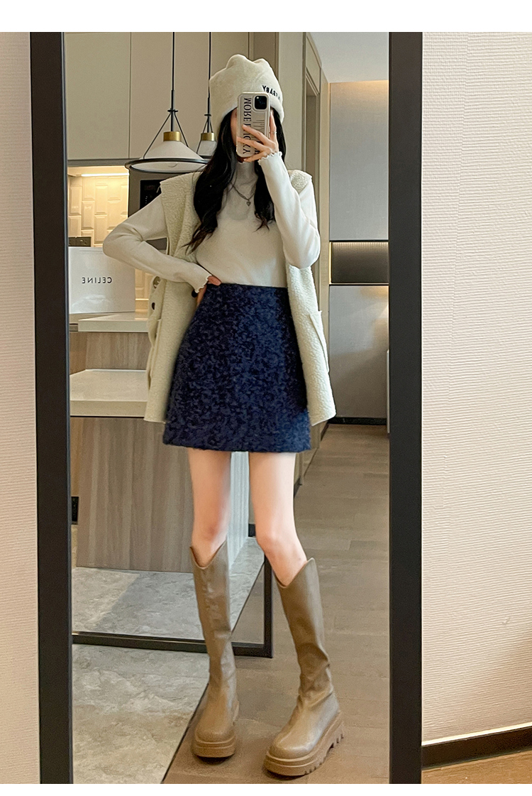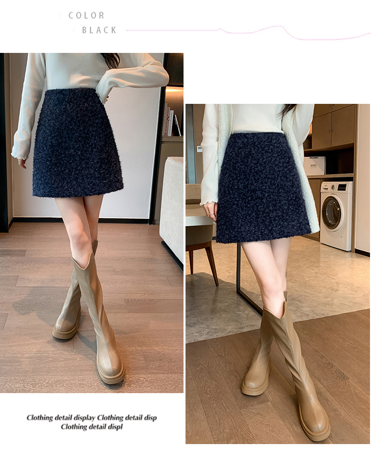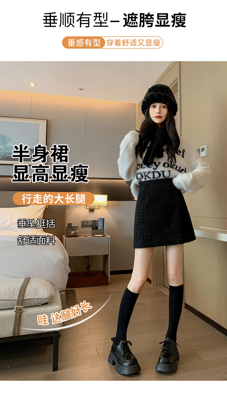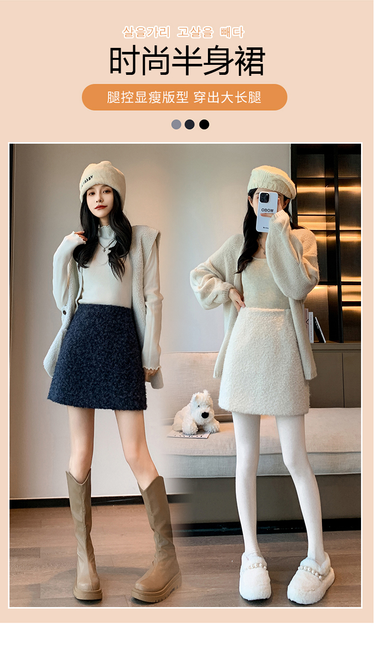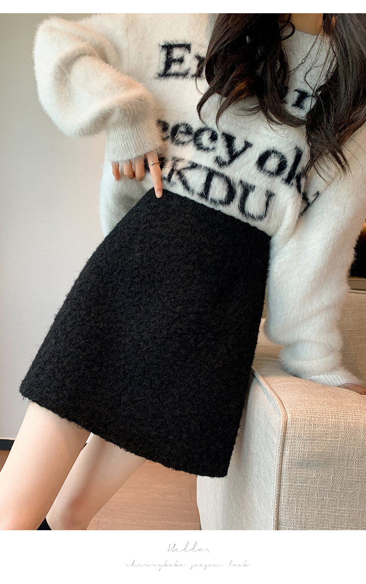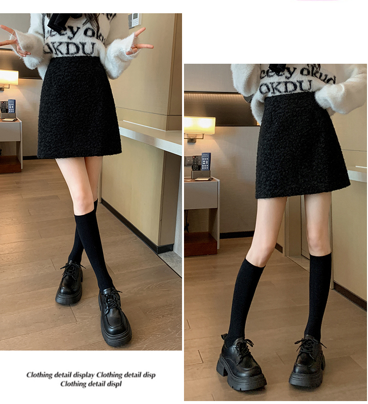 두꺼운 캐시미어 모직 스커트 여성의 가을과 겨울 높은 허리 슬리밍 A-라인 스커트 작은 엉덩이 흰색 짧은 치마스토어 가기