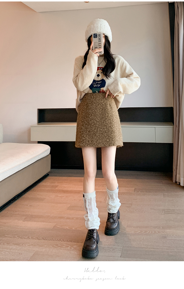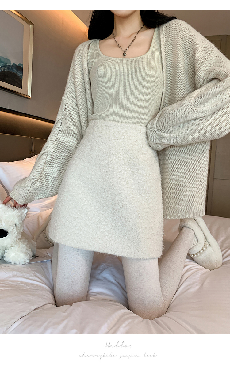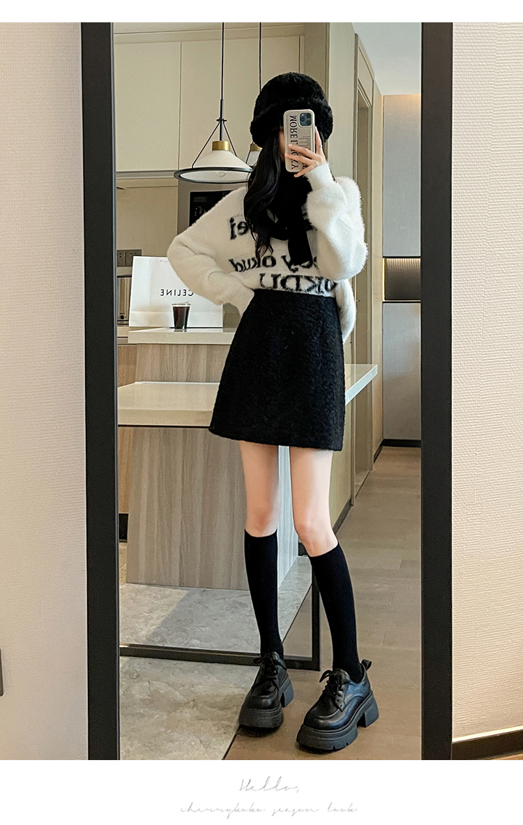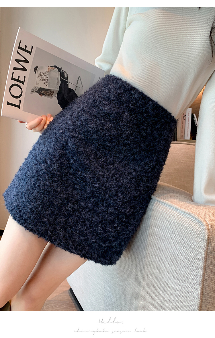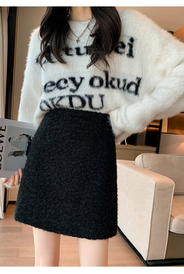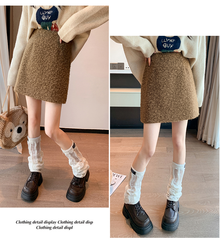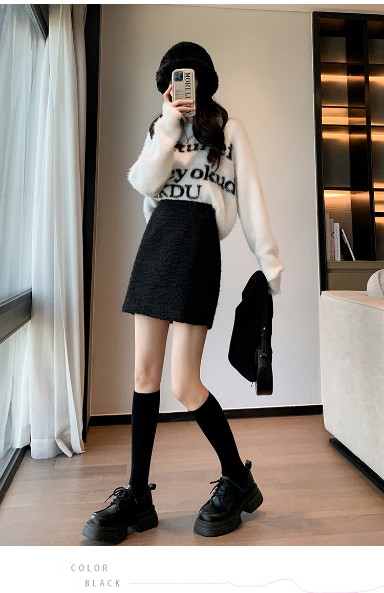 두꺼운 캐시미어 모직 스커트 여성의 가을과 겨울 높은 허리 슬리밍 A-라인 스커트 작은 엉덩이 흰색 짧은 치마스토어 가기