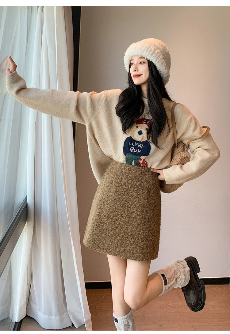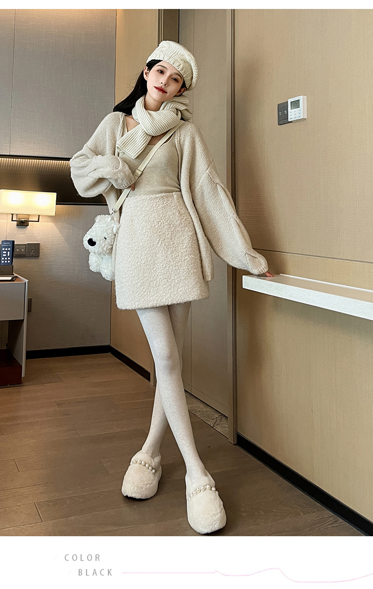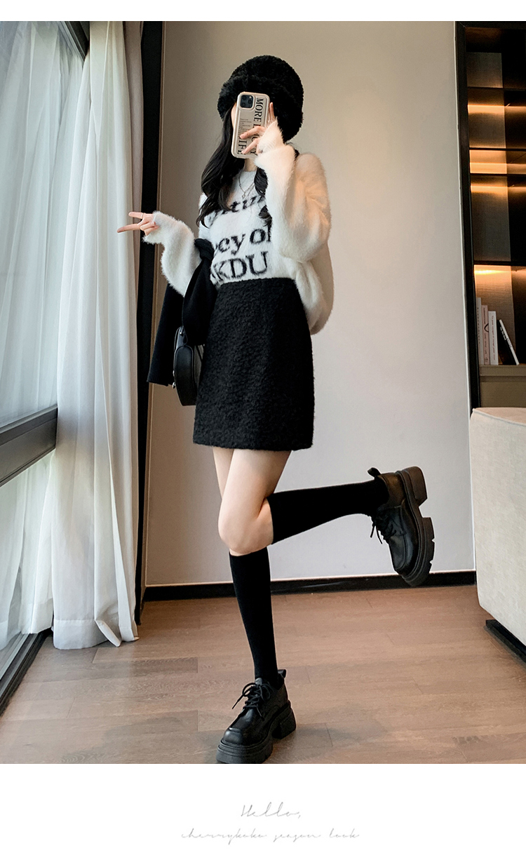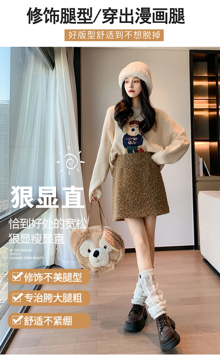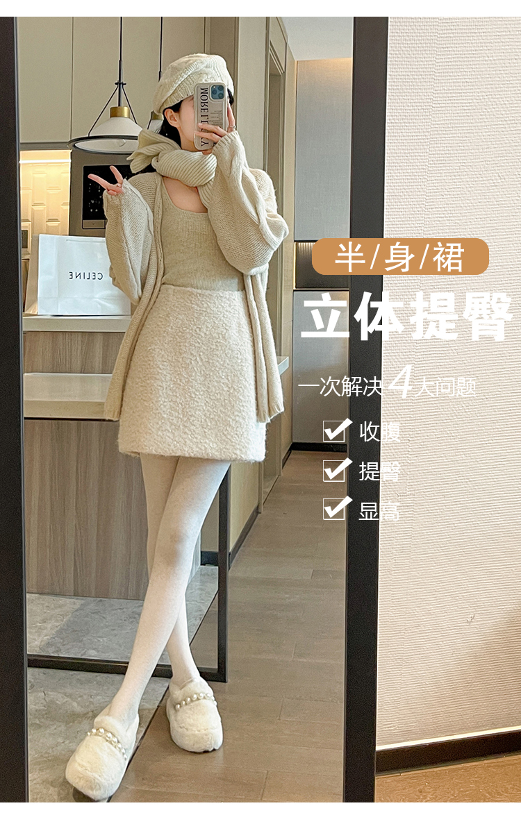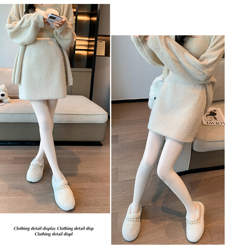 두꺼운 캐시미어 모직 스커트 여성의 가을과 겨울 높은 허리 슬리밍 A-라인 스커트 작은 엉덩이 흰색 짧은 치마스토어 가기