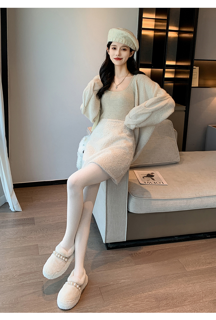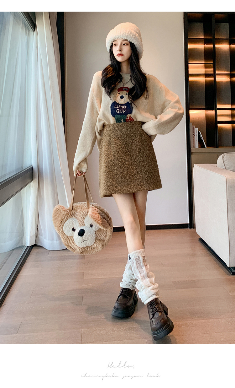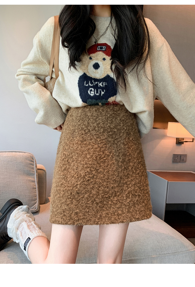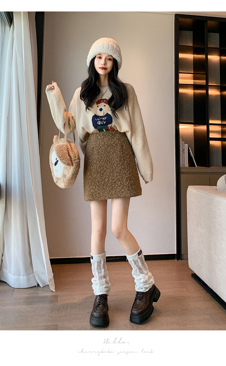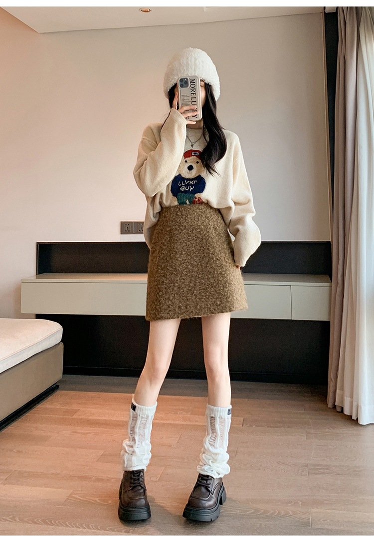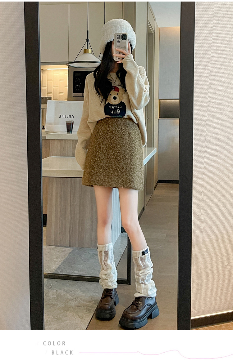 두꺼운 캐시미어 모직 스커트 여성의 가을과 겨울 높은 허리 슬리밍 A-라인 스커트 작은 엉덩이 흰색 짧은 치마스토어 가기