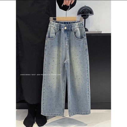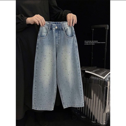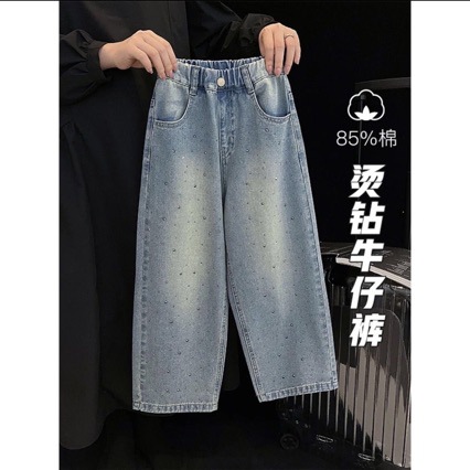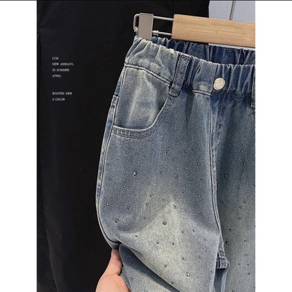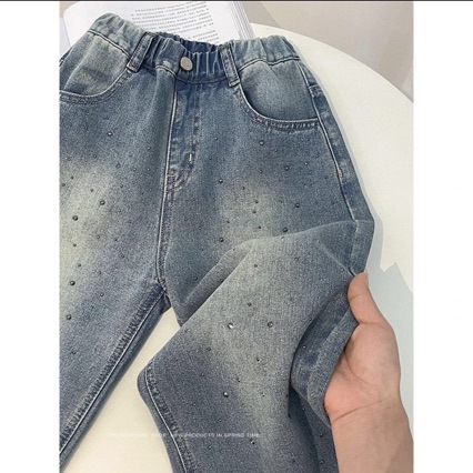 소녀 청바지 2024 봄과 가을 새로운 소녀 핫 라인스톤 청바지 패셔너블 웨스턴 스타일 올 매치 핫 라인스톤 청바지스토어 가기
