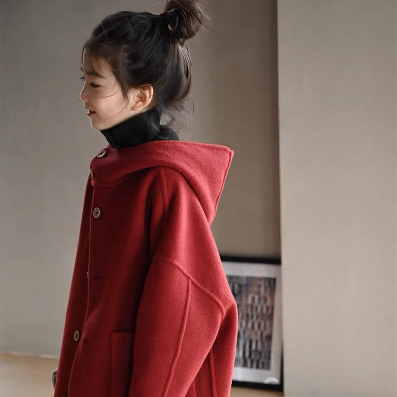여아용 단색 양면 착용 롱 코트 2025 겨울 신상 아동 여아용 따뜻한 모직 코트 트렌디스토어 가기