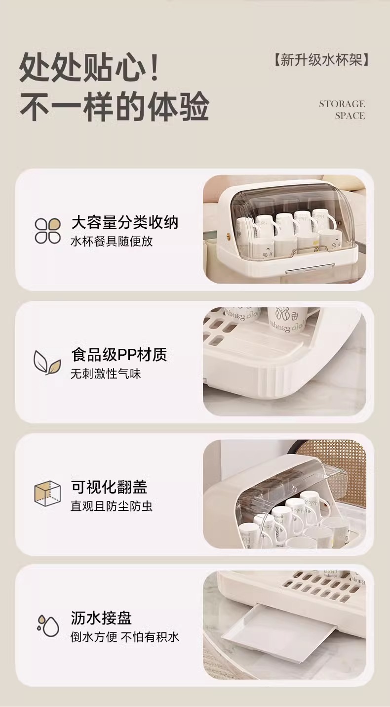 Xingyou 방진 컵 랙 스토리지 랙 라이트 럭셔리 유리 컵 티 컵 트레이 배수 컵 스토리지 랙