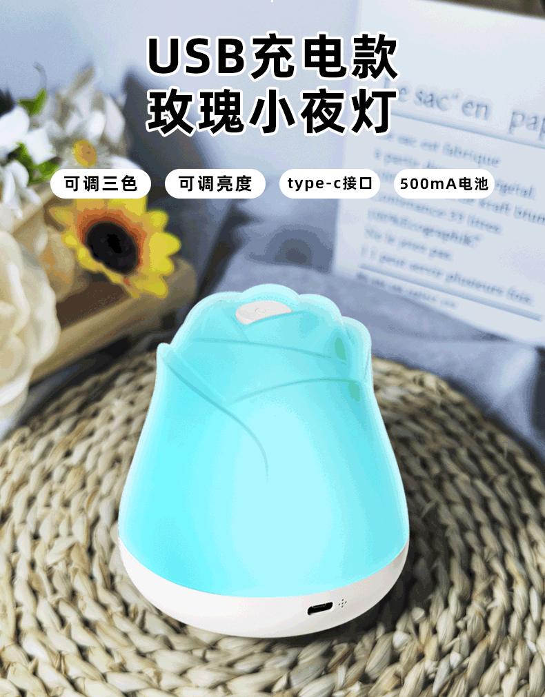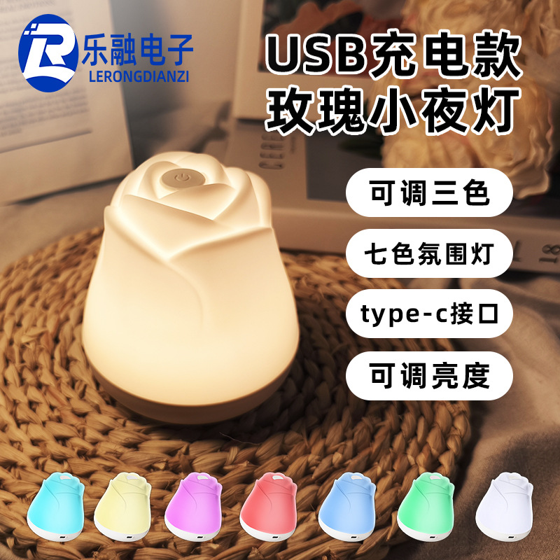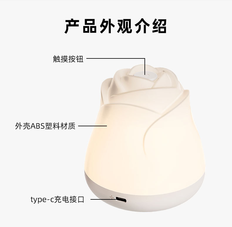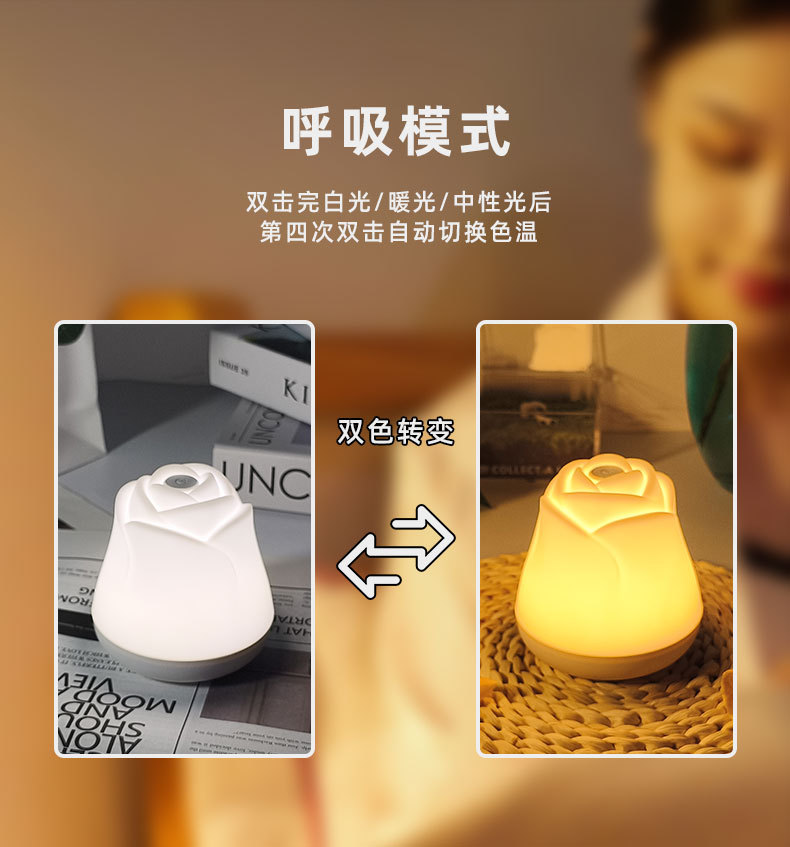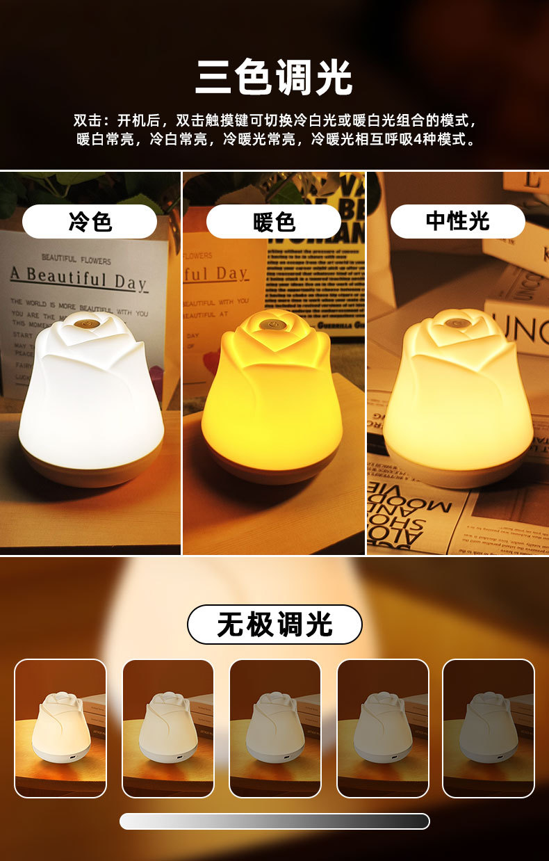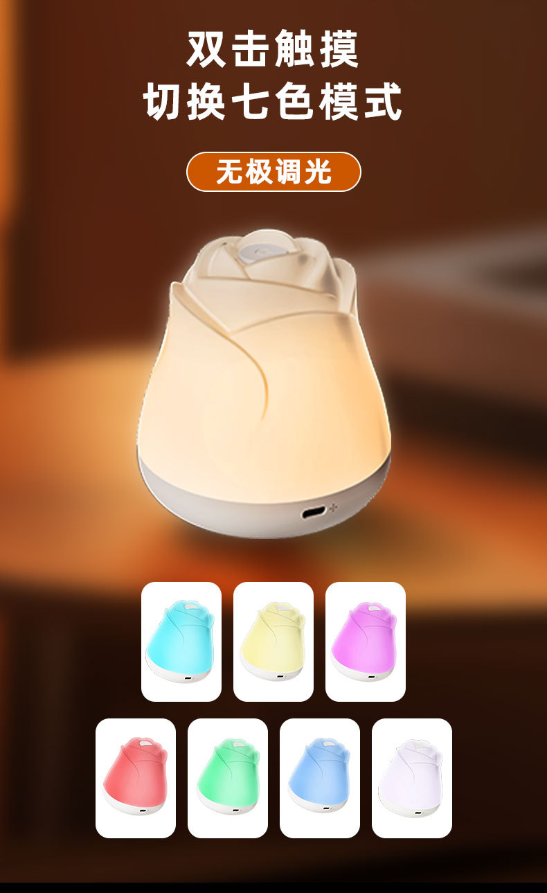 24년형 LED 야간등 침대 옆 고급스러운 침실 장미 소형 조명 터치 램프 선물 분위기 조명 조광 가능