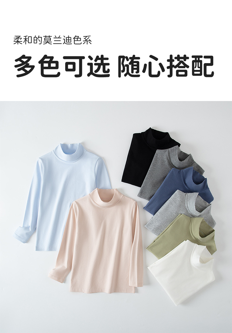 2024秋冬儿童无骨薄绒中领打底衫男女童纯色上衣宝宝弹力半高领20.5RMB立即购买>