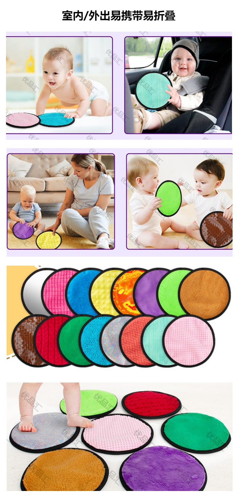 16pcs 라운드 감각 패드 다양한 질감 혼합 색상 어린이 감각 장난감 자폐증 어린이를위한 촉각 패드
