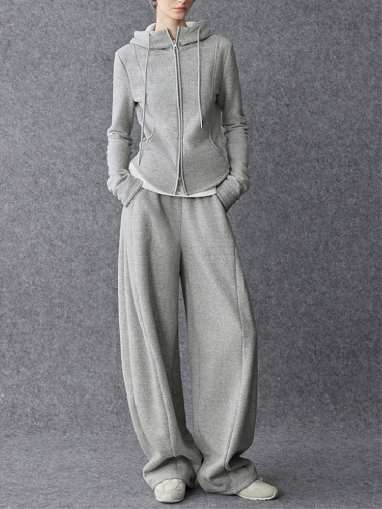 홍샨 신상 에어 레이어 슬림핏 후드티 여성용 다용도 곡선형 스웨트팬츠 세트 봄
