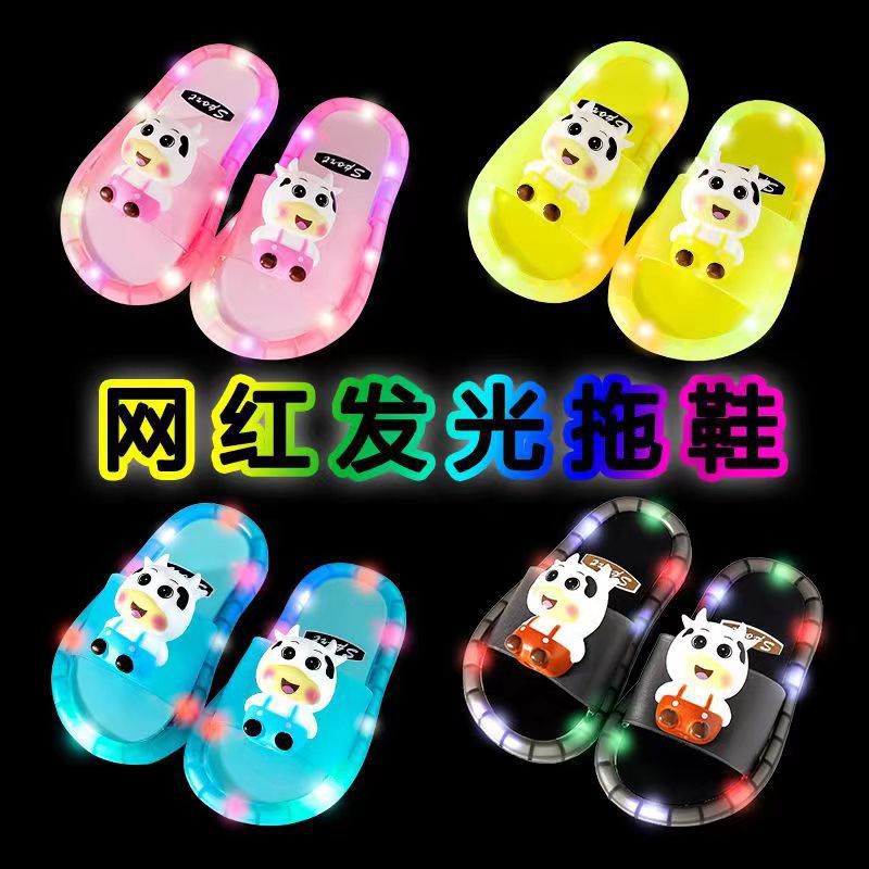 빛나는 어린이 슬리퍼 여름 새로운 외부 착용 만화 빛나는 소년과 소녀 미끄럼 방지 부드러운 바닥 귀여운 아기 홈 슬리퍼