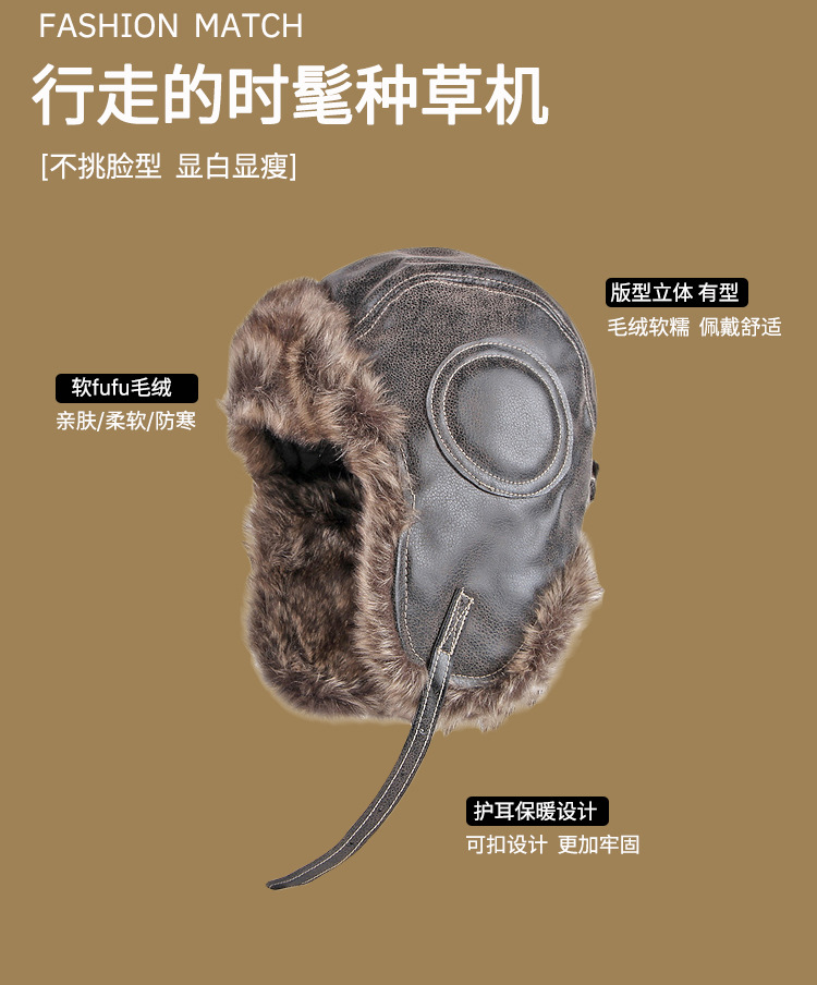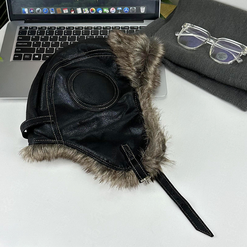 큰 머리 Ware Lei Feng Hat 남자의 겨울 두꺼운 따뜻한 비행가 모자 가죽 승마 모자 귀 보호 방한 Baotou 모자 여성스토어 가기