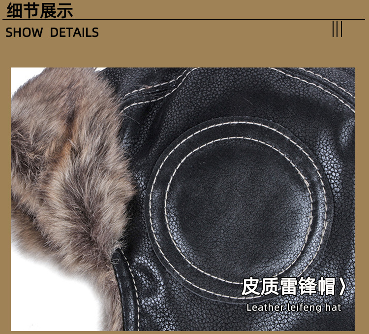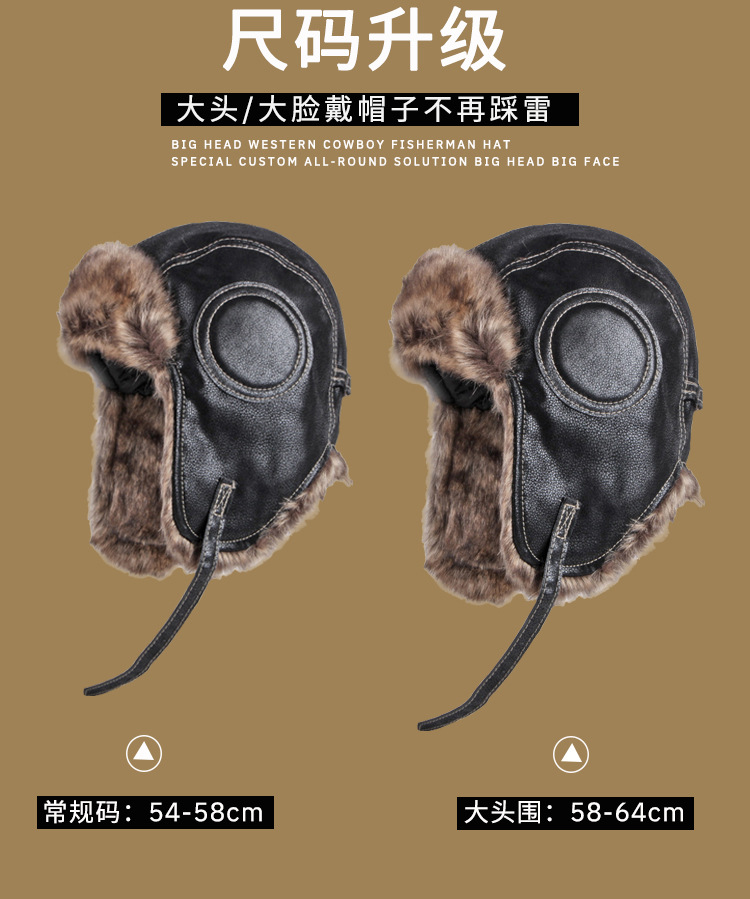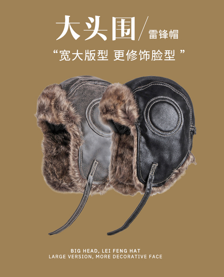 큰 머리 Ware Lei Feng Hat 남자의 겨울 두꺼운 따뜻한 비행가 모자 가죽 승마 모자 귀 보호 방한 Baotou 모자 여성