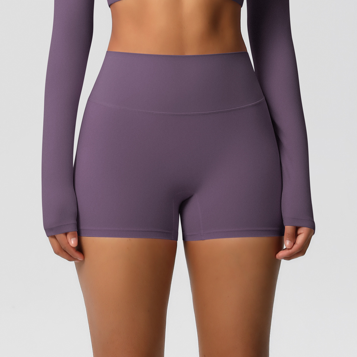 재고 크로스 보더 솔리드 컬러 양면 샌딩 하이 허리 타이트 힙합 요가 반바지 달리기 피트니스 스포츠 3 점 바지스토어 가기