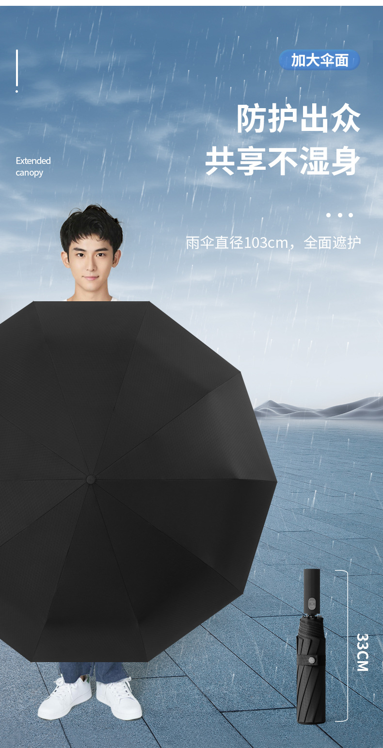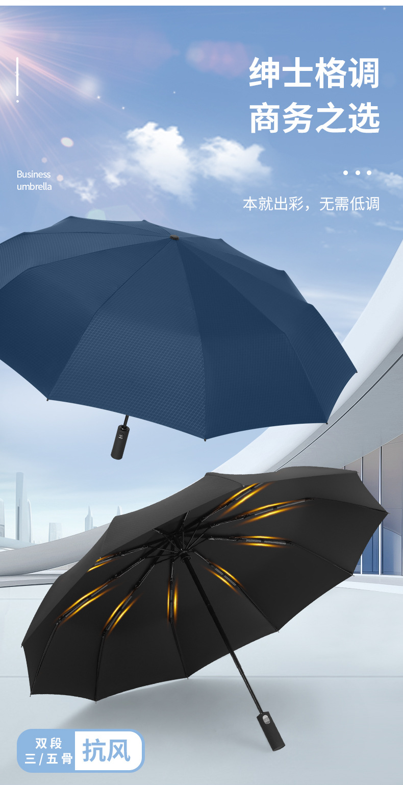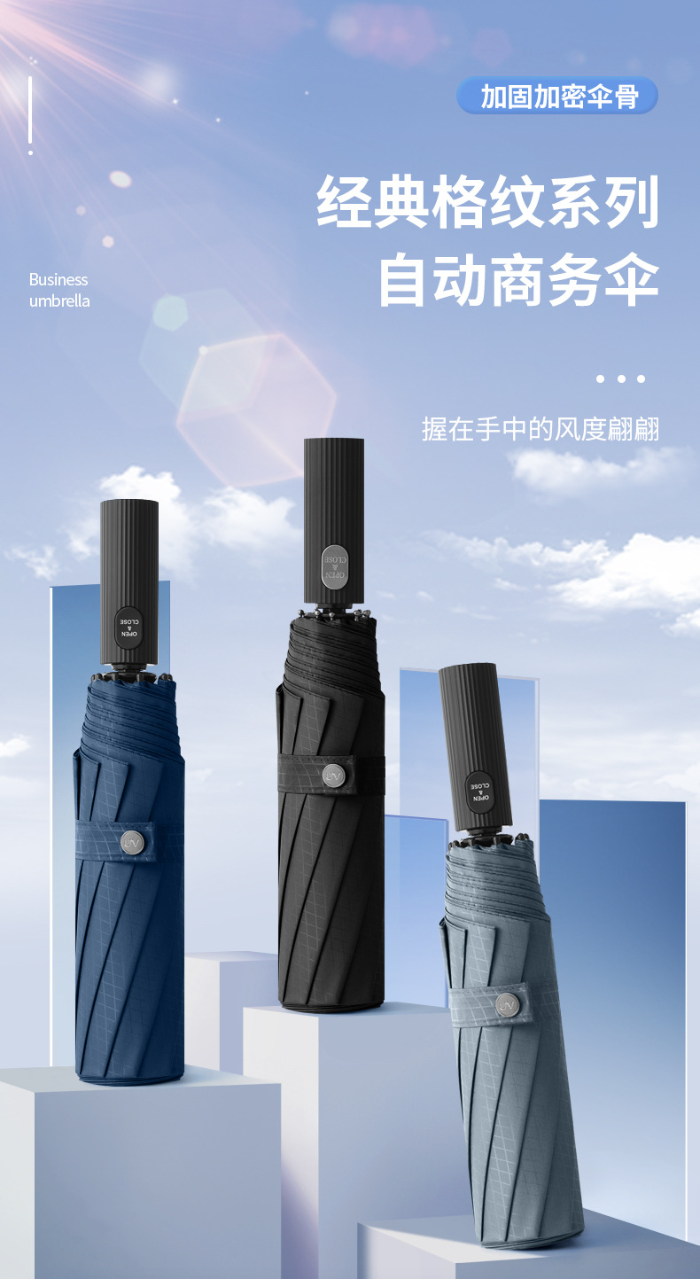 30-뼈 비즈니스 우산 클래식 격자 무늬 접이식 우산 더블 드래곤 뼈 강화 자동 우산 햇빛과 비 이중 사용 블랙 고무 선 스크린 우산