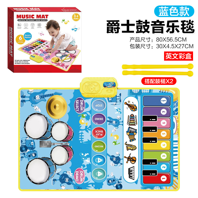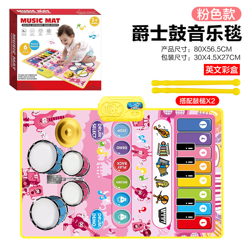 | 【213】 二合一爵士鼓音乐垫 | 粉色、蓝色 | 英文彩盒 | 音乐垫:80x50cm 鼓槌:29cm | 30x4.5x27cm | 48 | 79*31*83CM | 3节5号电池 |