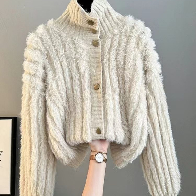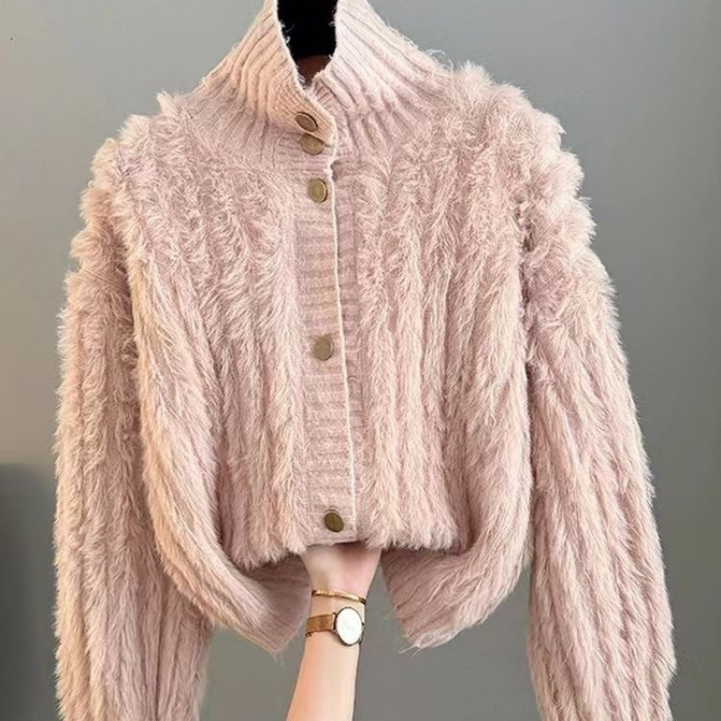 밍크 터틀넥 스웨터 카디건 가을과 겨울 2024 새로운 하이 엔드 게으른 우아한 느슨한 머리 니트 재킷