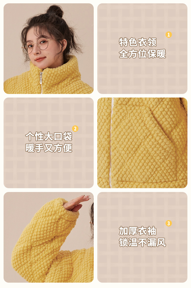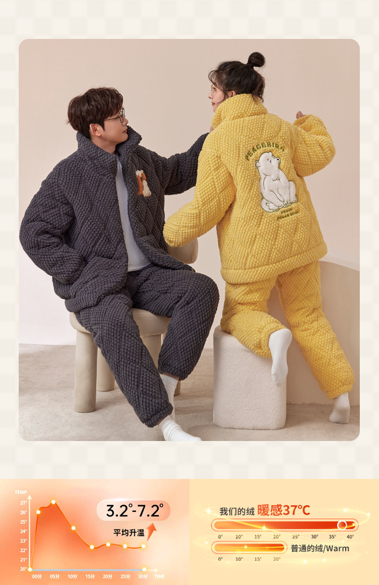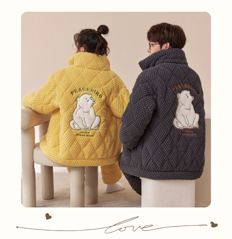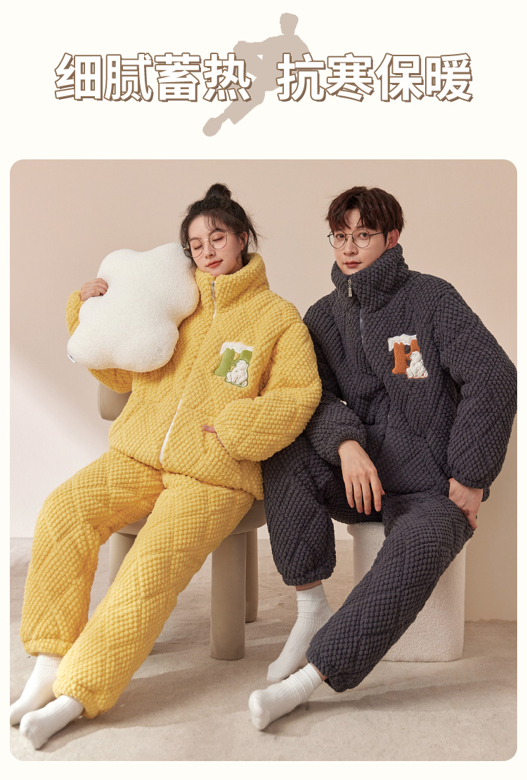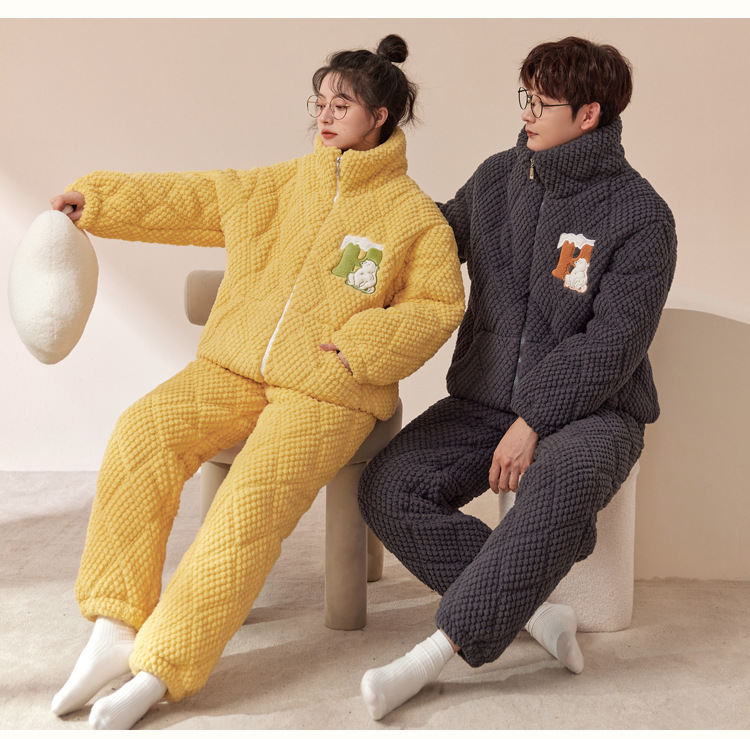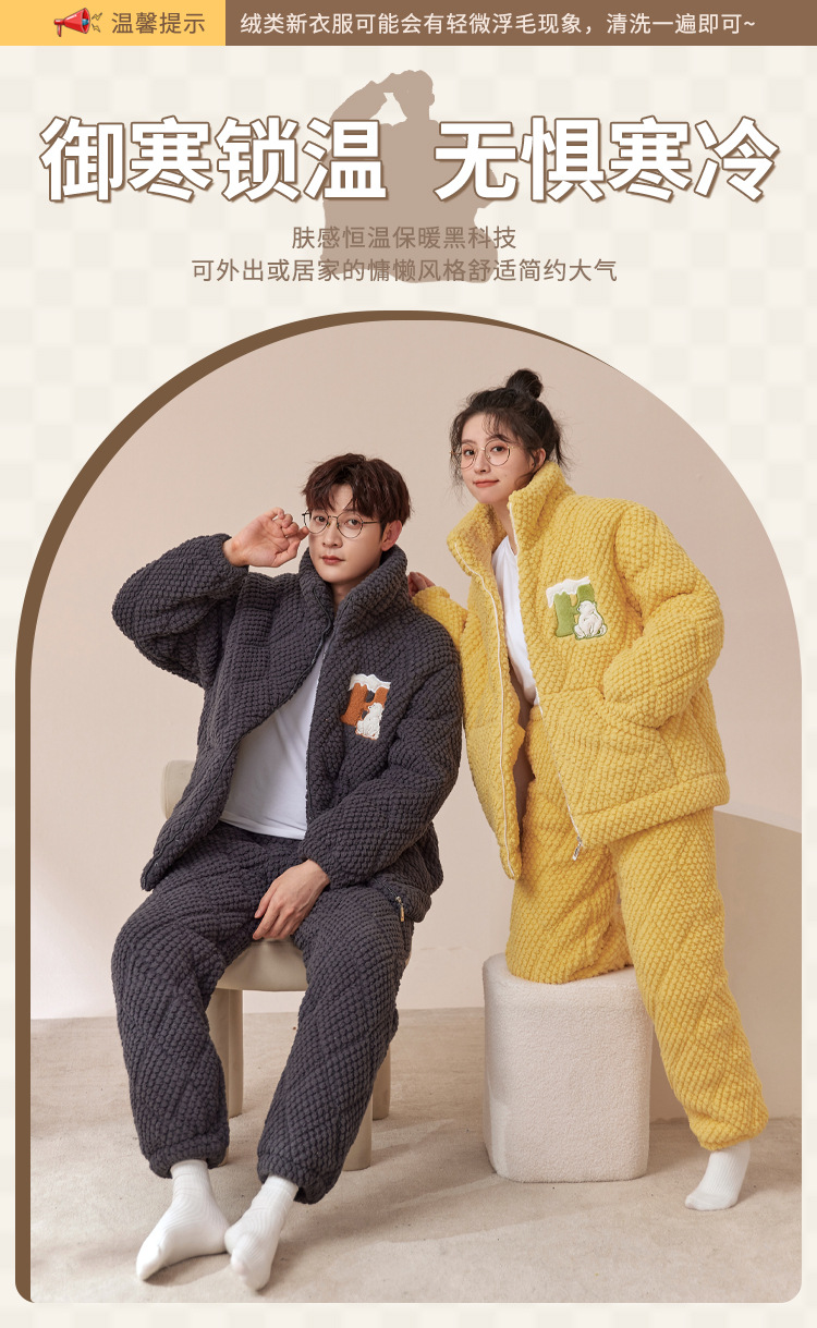 새로운 청소년 간단한 산호 양털 지퍼 만화 커플 클립 코튼 파자마 겨울 세트 두꺼운 홈 의류 세트스토어 가기