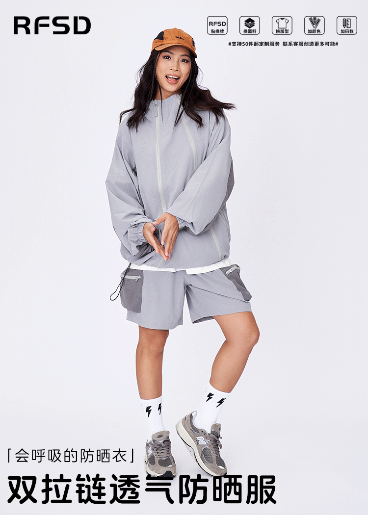 RFSD 남성 | 2025 봄과 여름 새로운 더블 지퍼 야외 통기성 느슨한 선 스크린 스포츠 세트 코트 남성스토어 가기