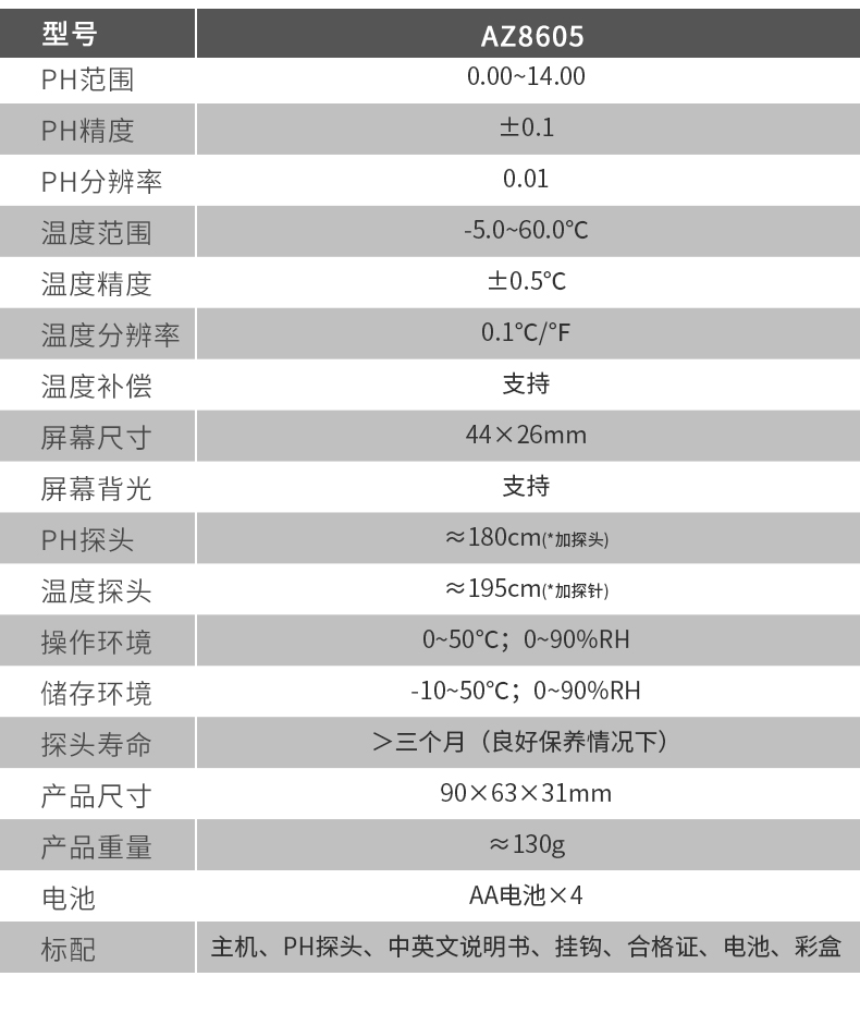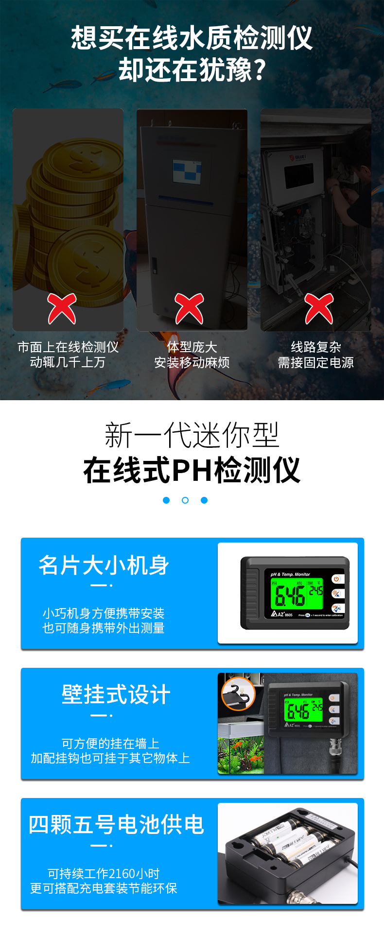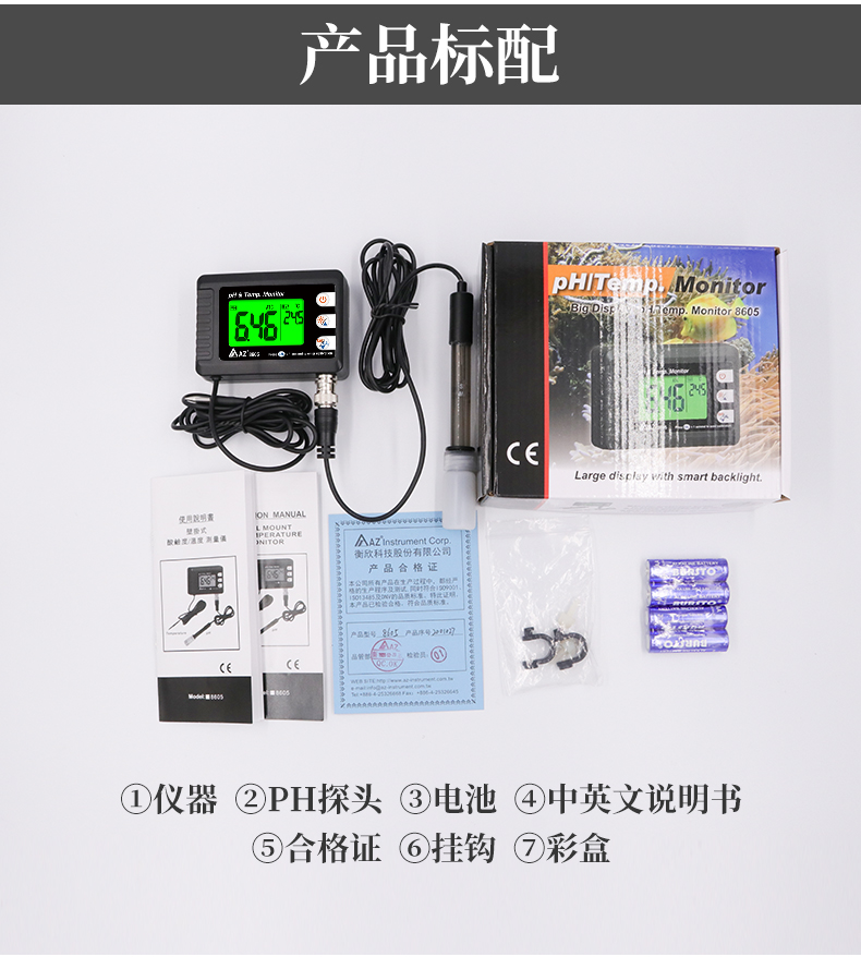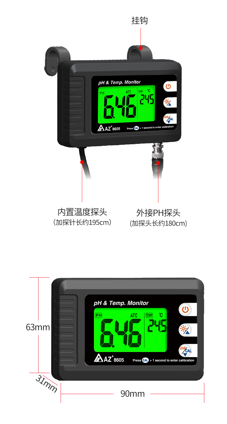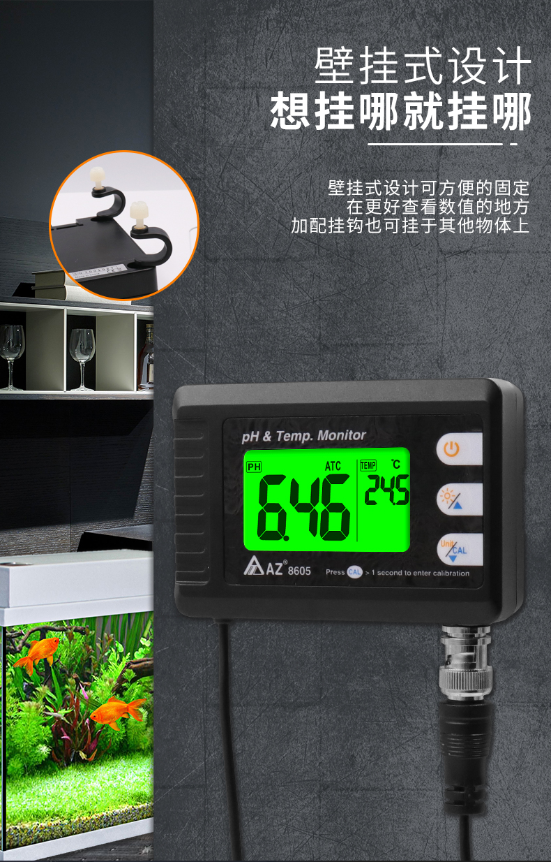 • AZ8605 벽걸이형 측정 막대 pH/온도 포함