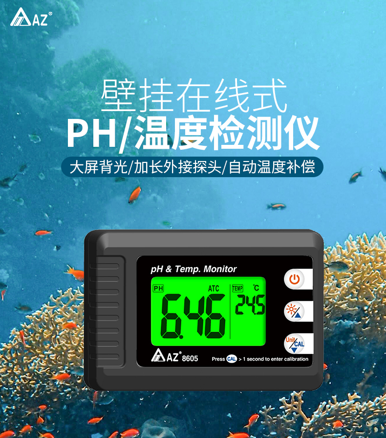 대만 Hengxin AZ8605 벽 장착 pH 미터 pH 미터 산업 pH 테스터 어항 수질 pH 검출기