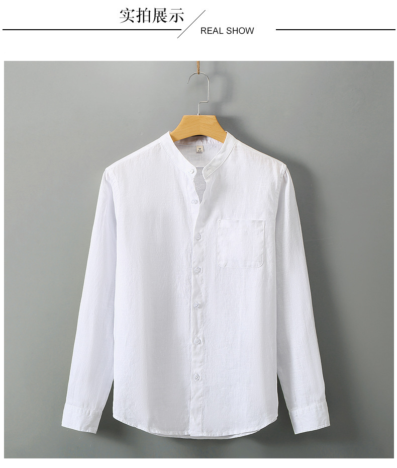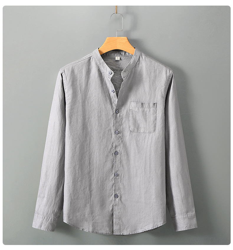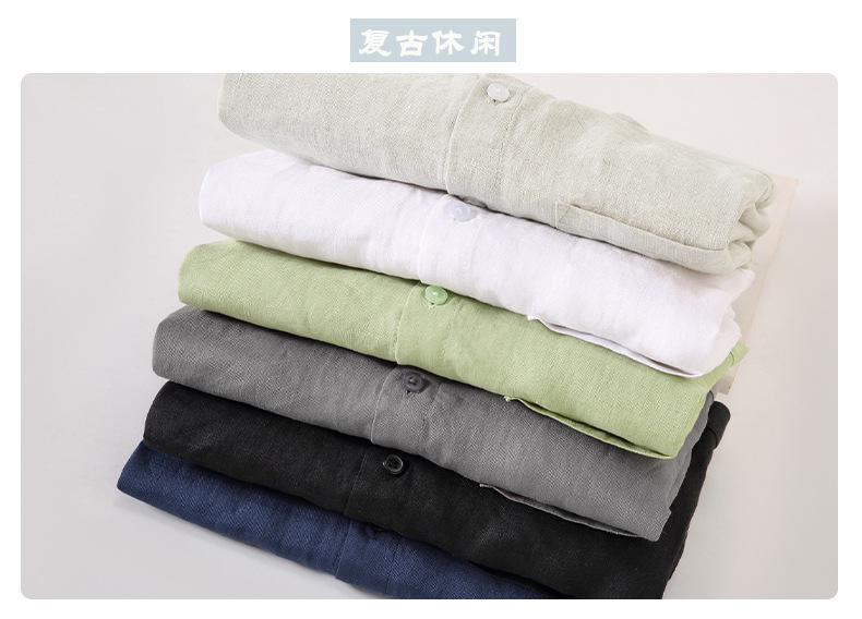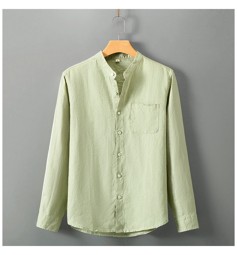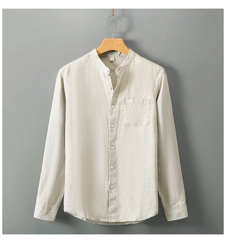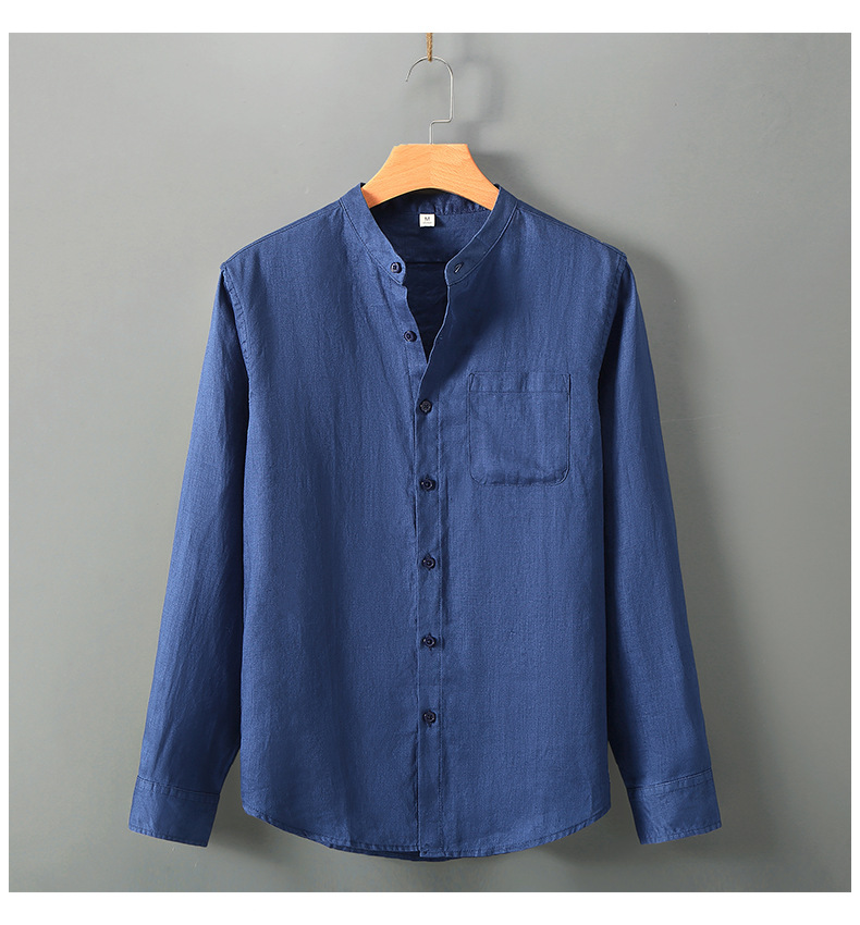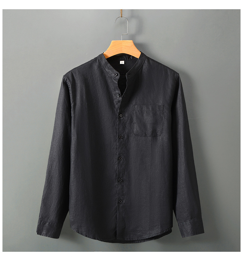 9702 순수 리넨 긴팔 셔츠 남성 중국 스타일 수직 칼라 일반 리넨 포켓 느슨한 통기성 카디건 리넨 탑
